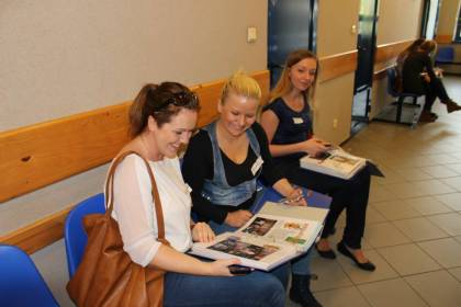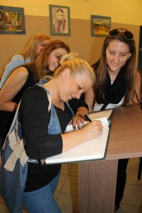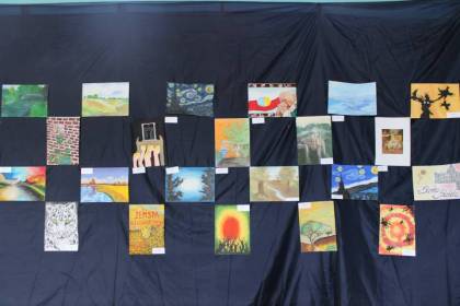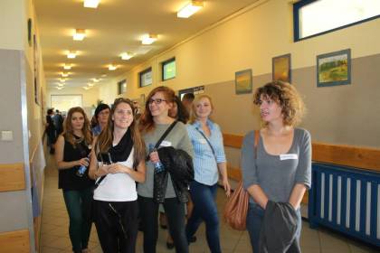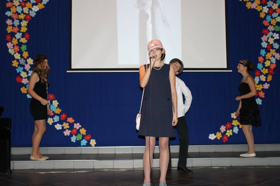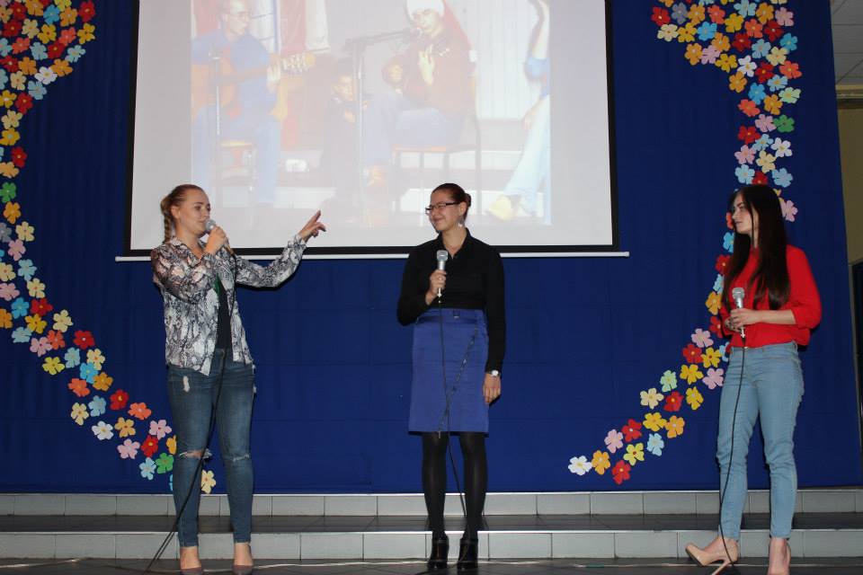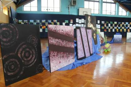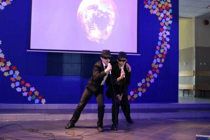 Po rozmowach i poczęstunku, nastąpiła część artystyczna, na którą składał się program w wykonaniu szkolnego zespołu teatralnego „Trapez” oraz absolwentów naszej szkoły, którzy przed laty również aktywnie uczestniczyli w artystycznym życiu szkoły. W program artystyczny wpleciony był pokaz slajdów z kronik szkolnych.