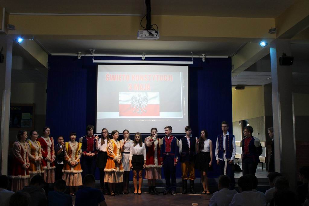 Z okazji kolejnej rocznicy uchwalenia Konstytucji 3 Maja uczniowie Gimnazjum nr 2 przygotowali rocznicowe przedstawienie. W akademii wykorzystane były fragmenty "Pana Tadeusza", co nadało szczególnej rangi i klimatu. Stroje dopasowane do utworu, piękna gra i muzyka pozwoliły nam przenieść się myślami do tamtych czasów. Uroczystość przygotowały mgr Grażyna Gerhards i mgr Adriana Wręczycka, opiekunki Koła Teatralnego "Trapez".