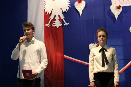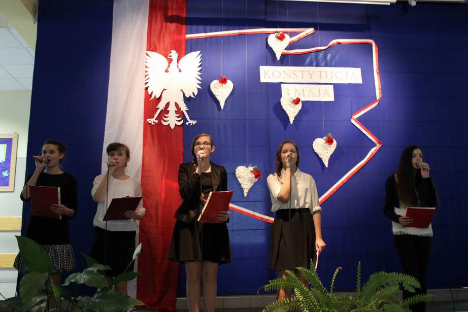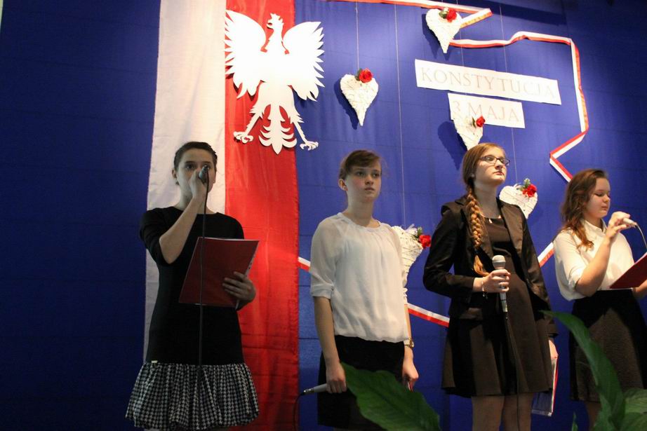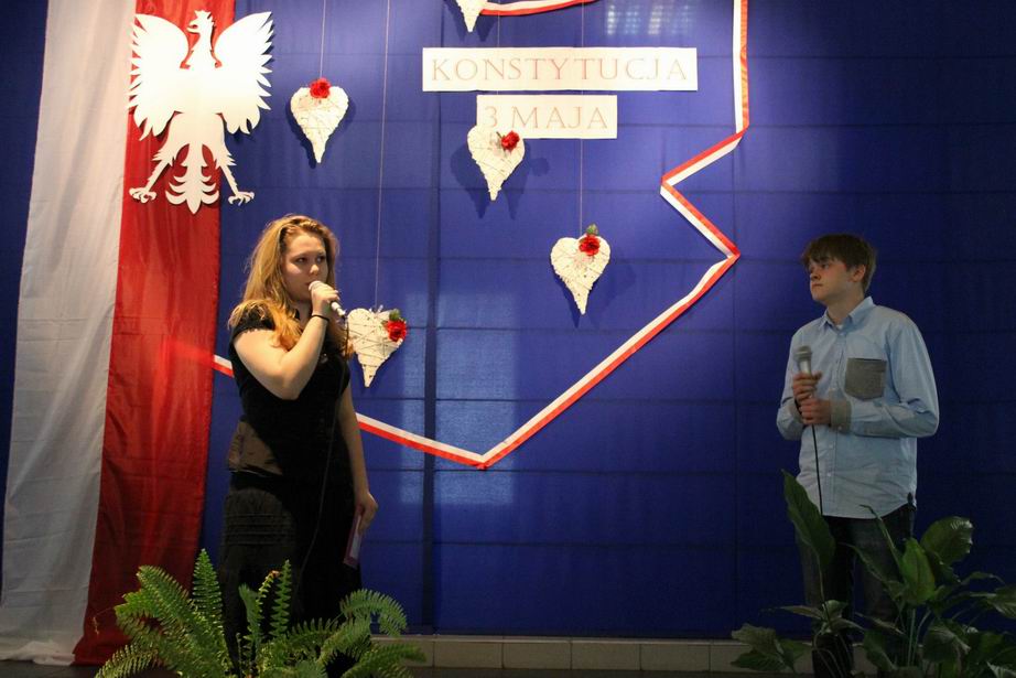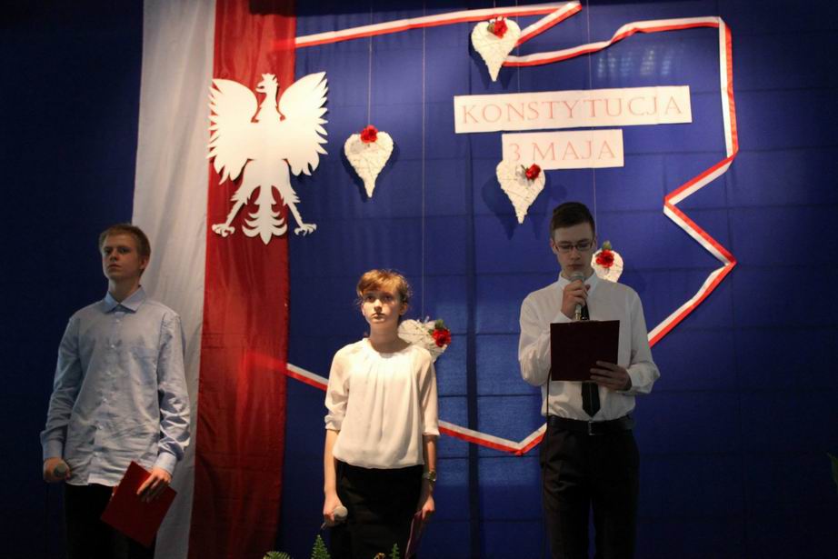 Z okazji kolejnej rocznicy Konstytucji 3 Maja w Gimnazjum nr 2 odbyła się uroczysta akademia przypominająca historyczne wydarzenia związane z powstaniem i tego ważnego dokumentu. Uczniowie w pełnej uroczystej gali recytowali okolicznościowe wiersze, śpiewali pieśni patriotyczne. Tę niecodzienną lekcję historii przygotowała mgr Bogumiła Majewska, zaś oprawą muzyczną zajęła się mgr Grażyna Gerhards.
