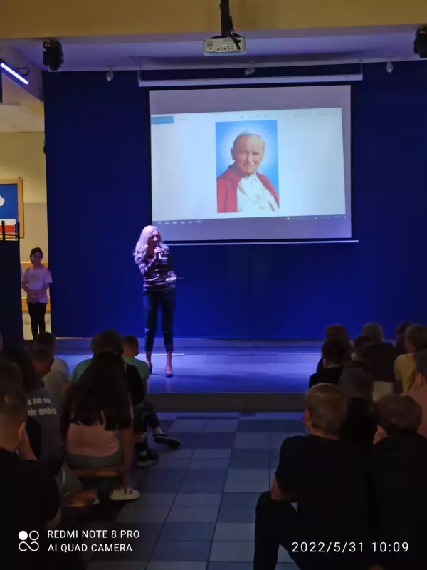 31 maja 2022 r. kolejny już raz obchodziliśmy nasze święto – święto społeczności szkolnej. Dla nas jest to dzień szczególny – to pamięć, oddanie i zjednoczenie z Patronem Szkoły, którym jest św. Jan Paweł II. Z tej okazji uczniowie na apelu przybliżyli postać Karola Wojtyły - Jana Pawła II oraz zostały przygotowane "Wadowickie Kremówki".