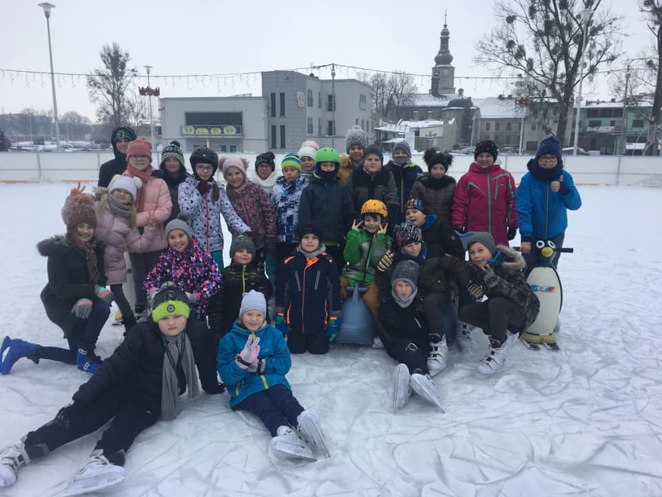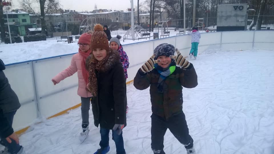 Uczniowie klas 4 w ramach lekcji wychowania fizycznego uczestniczyli w zajęciach sportowych na lodowisku. Urok prawdziwej zimy, lekki mróz i opady śniegu stworzyły idealną atmosferę do zabawy.