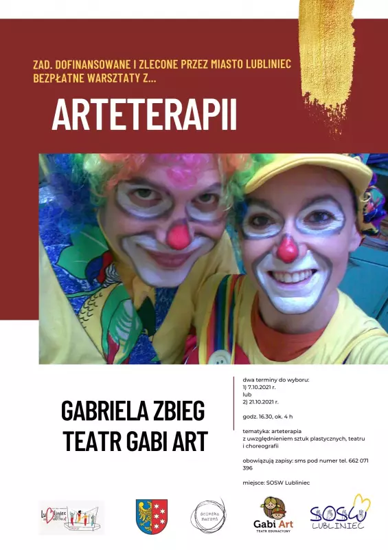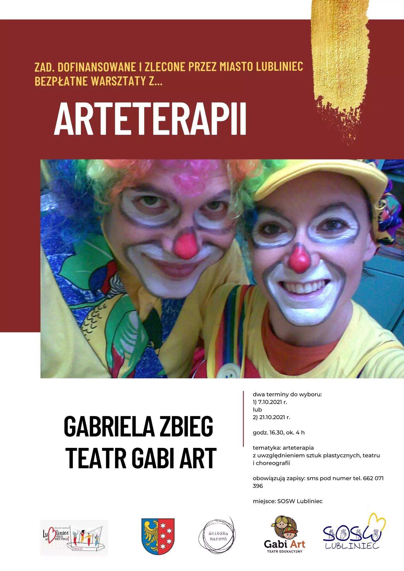 Zapraszamy na bezpłatne warsztaty ARTETERAPII, które odbędą się w SOSW w Lublińcu w dwóch terminach : 07.10 i 21.10 o godzinie 16.30