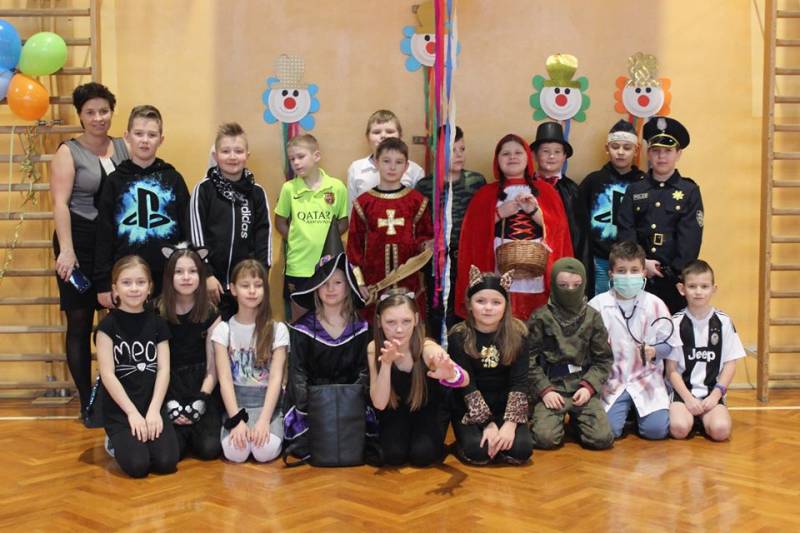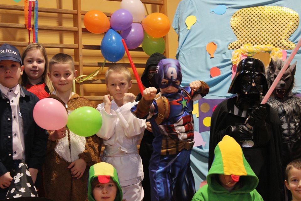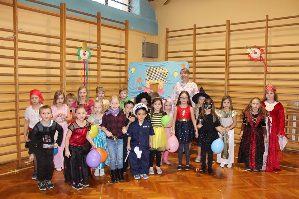 6.02.2020 r. w naszej szkole odbył się bal karnawałowy. Sala gimnastyczna wyglądała inaczej niż na co dzień i zamieniła się w prawdziwą salę balową. Dzieci wystąpiły w ciekawych, kolorowych kostiumach, przebrane za bohaterów znanych bajek i nie tylko. Nie sposób zliczyć i wymienić tych wszystkich postaci. Niektórzy byli nie do poznania, inni budzili podziw, a niekiedy nawet przerażenie. Uczniowie bawili się znakomicie przy rytmach różnorodnej muzyki jak przystało na prawdziwy bal. Były pociągi, korowody, kółeczka i tańce w parach. Już dziś czekamy na kolejny bal !