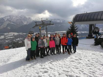 Jak każdej zimy, uczniowie naszej szkoły, miłośnicy narciarstwa, wyjechali do Kościeliska, by na chwilę zapomnieć o szkolnych obowiązkach i poszusować na stoku, korzystając z pięknej i obfitej w śnieg zimy. Tegoroczny wyjazd zaliczamy do szczególnie udanych przez wzgląd na towarzyszącą nam wymarzoną narciarską pogodę. Korzystając z doskonale przygotowanych stoków rozwijali swoje umiejętności jazdy na nartach. Część z nich stawiała pierwsze kroki pod okiem wykwalifikowanej kadry instruktorskiej, bardzo szybko dołączyli do pozostałych i wspólnie z dnia na dzień doskonalili umiejętności. Codzienne zajęcia na stokach były bardzo atrakcyjne, ale również wymagające zaangażowania. Wszyscy spisali się znakomicie! Poza zjazdami mieliśmy okazję korzystać z relaksu Term Chochołowskich czy pieszych wędrówek, podziwiając piękny krajobraz Tatr. Nasi narciarze szusowali wieczorową porą na stoku WITÓW-SKI. Spędziliśmy zabawnie czas na torze saneczkowym w Zakopanem oraz na kręglach. Uczniowie mieli okazję do zintegrowania się z grupą rówieśników z Kalet, ponieważ mieszkaliśmy w tym samym ośrodku. Początkowo wszyscy byli lekko zawstydzeni, ale z biegiem czasu świetnie się dogadywali i spędzali wspólnie czas, jeżdżąc na stokach oraz grając w różne gry i zabawy integracyjne. Program "Białego szaleństwa" to jedna z najbardziej atrakcyjnych form kształcenia uczniów naszej szkoły, nabywają oni umiejętności poza systemem klasowo - lekcyjnym, często rozwijają je jako swoje hobby, czy aktywne metody spędzania wolnego czasu.