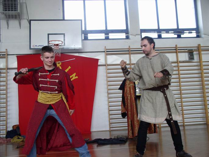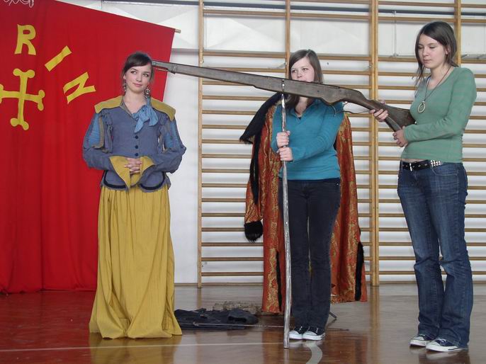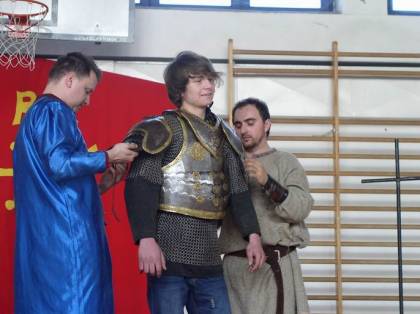 Kolejny raz w tym roku gościliśmy rycerzy z bractwa Kerin. W interesujący sposób pokazali uczniom, jak w średniowieczu walczyli rycerze. Największą atrakcją dla uczniów była przymiarka strojów z tamtej epoki.