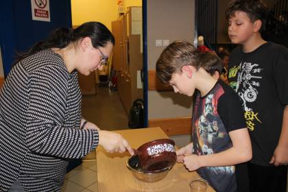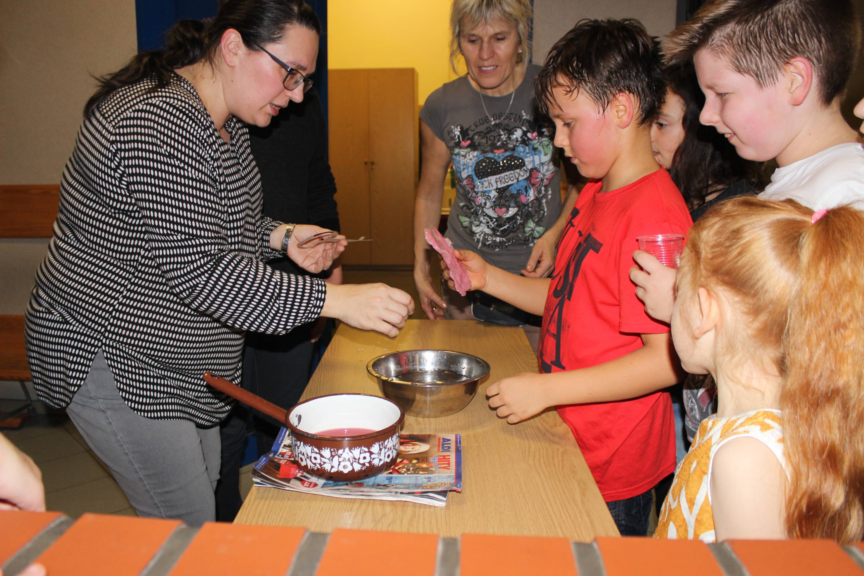 W dniu 28.11.2017 w naszej szkole odbyła się DYSKOTEKA ANDRZEJKOWA. Najpierw licznie bawiły się klasy młodsze naszej szkoły, które oprócz zabawy dyskotekowej brały też udział w zabawach andrzejkowych, takich jak wyścig butów i lanie wosku (kolejka nie miała końca). Wielką atrakcją dla dzieci była możliwość zaśpiewania piosenki do mikrofonu. Dyskotekę zakończyły starsze klasy, które wspólnie bawiły się na parkiecie i wróżyły z serc imiona kandydatów na męża lub żonę. Dyskotekę i zabawy andrzejkowe przygotowali przedstawiciele Samorządu Uczniowskiego.