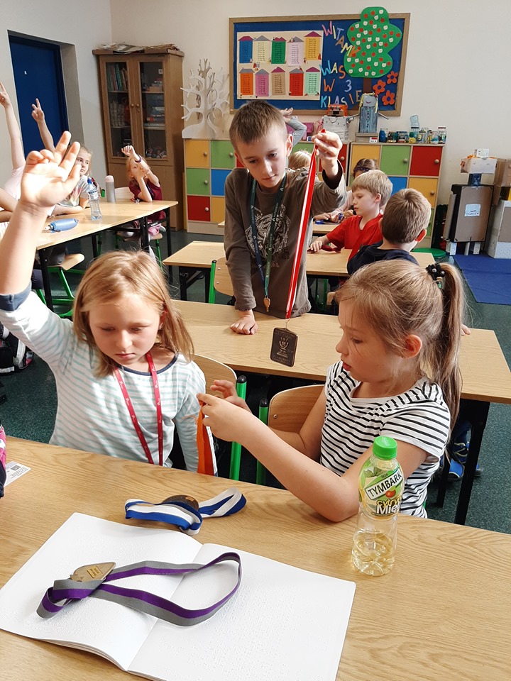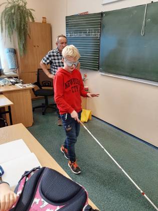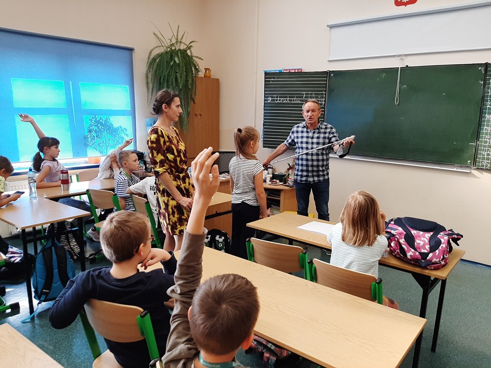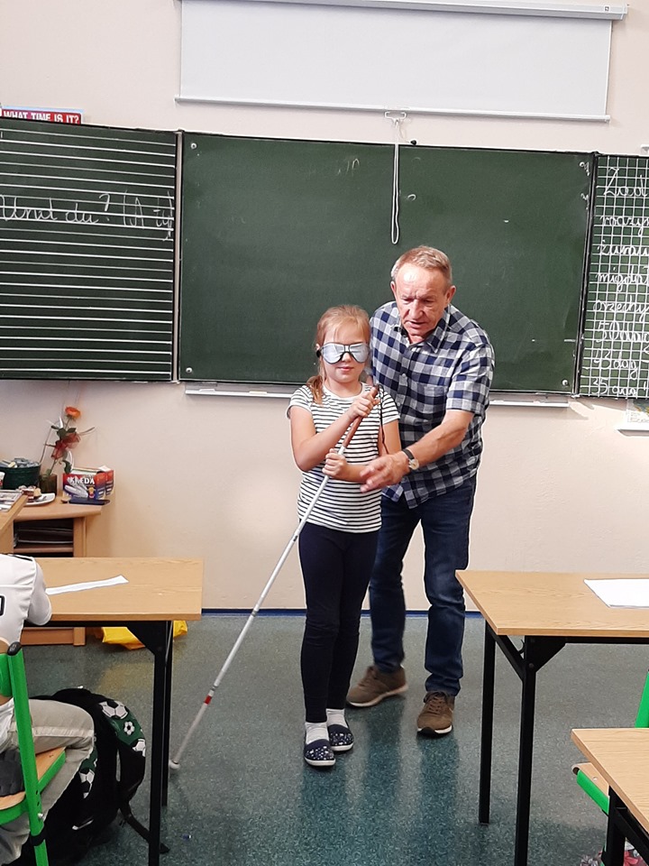 W Dniu Białej Laski uczniowie klas trzecich gościli pana Tomasza Lesika, który przybliżył uczniom świat osoby niewidzącej i niedowidzącej. Pan Tomasz opowiedział o swoich doświadczeniach, o trudnościach wiążących się z utratą wzroku, ale i o swoich zainteresowaniach, które może rozwijać pomimo niepełnosprawności. Dzieci mogły zapoznać się z pismem Braila, z nowinkami technologicznymi ułatwiającymi obecnie osobom niewidzącym funkcjonowanie w świecie. Uczniowie chętnie podejmowali próbę poruszania się z białą laską z zakrytymi oczyma zdając się na pozostałe zmysły.