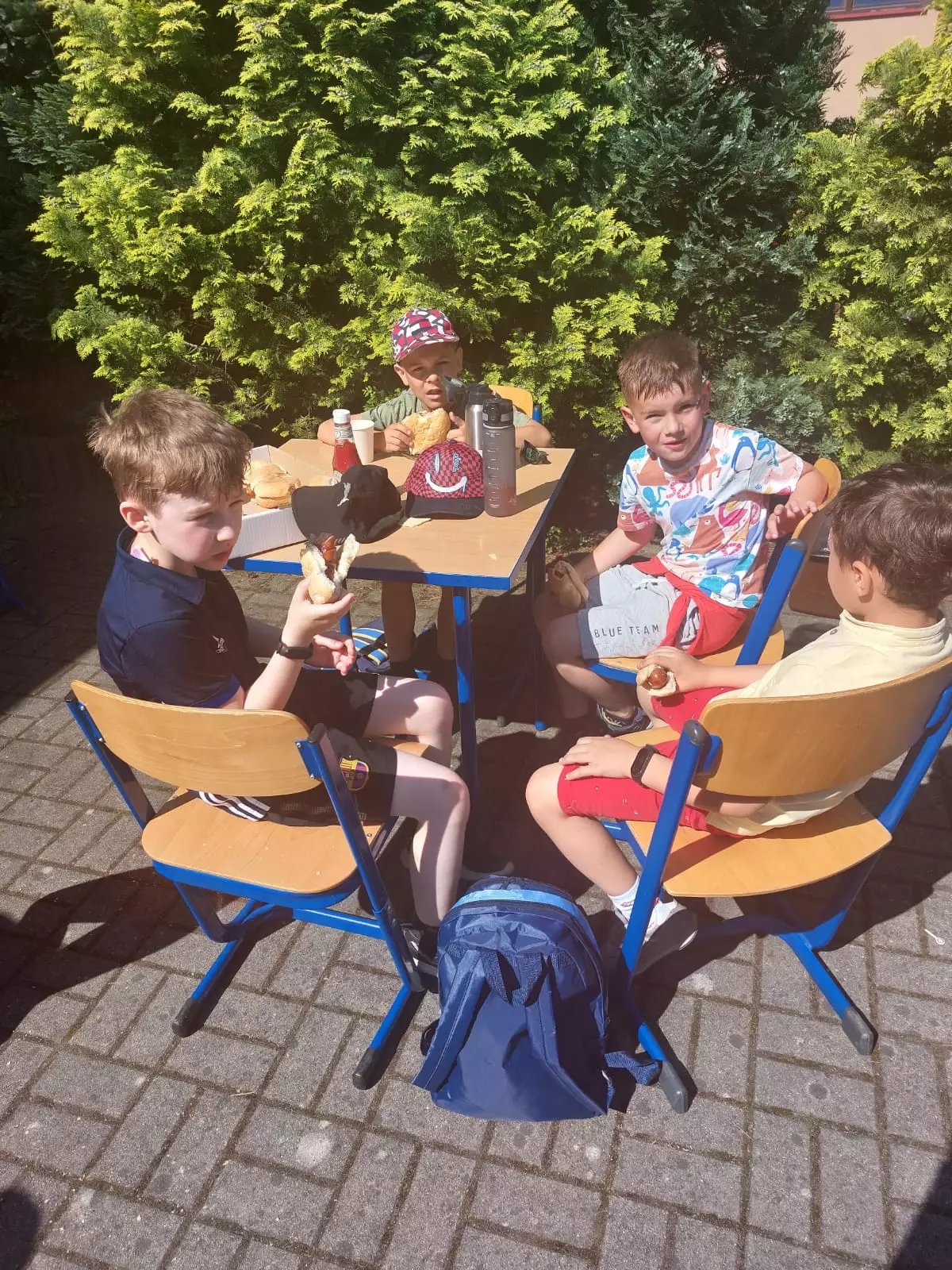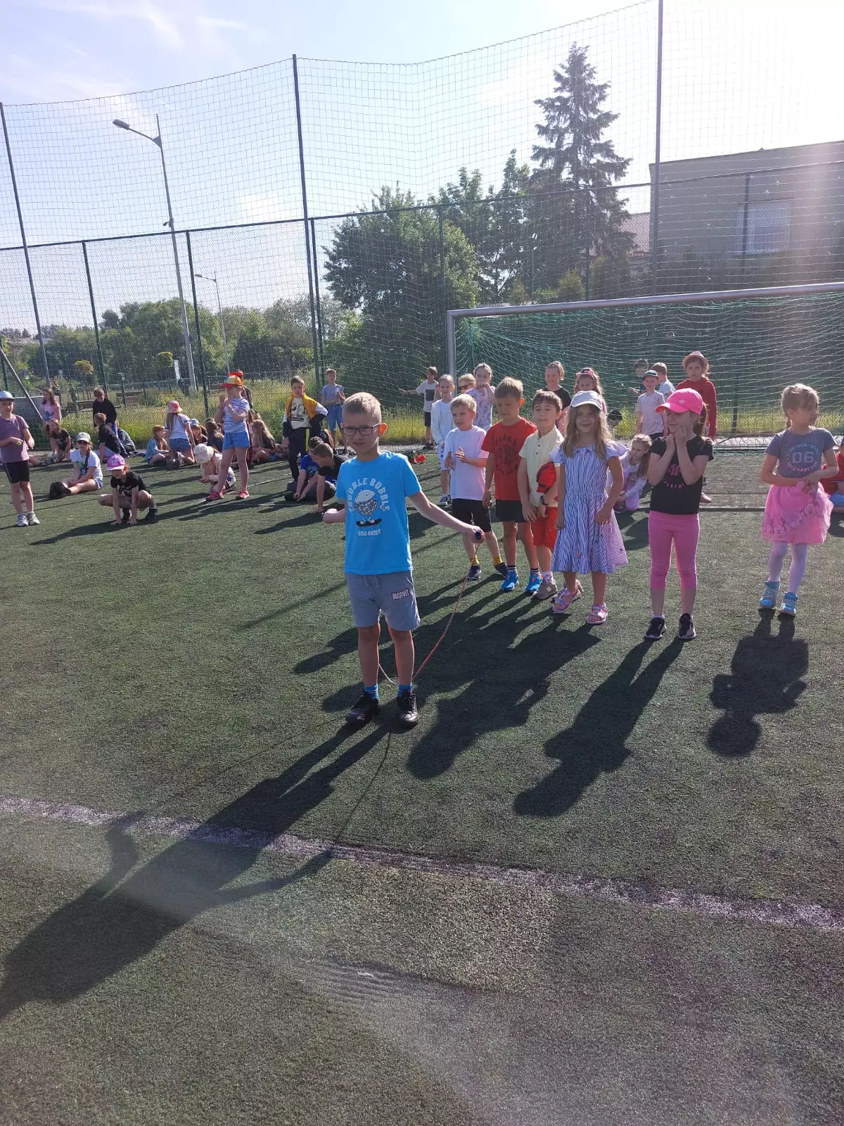 Dzień Dziecka w naszej szkole obfitował w wiele atrakcji. Najpierw odbyły się zawody sportowe, w których uczniowie rywalizowali w szybkości, zwinności i umiejętnościach gimnastycznych. Następnie urządzono piknik z grillowanymi kiełbaskami, a dzieci spędzały czas na wspólnych grach i zabawach. Królowały planszówki, zabawy z piłką i skakanką. Całość osłodziły babeczki, które zakupiła dla wszystkich uczniów Szkolna Rada Rodziców. Ten wyjątkowy dzień zostanie na długo w naszych wspomnieniach.