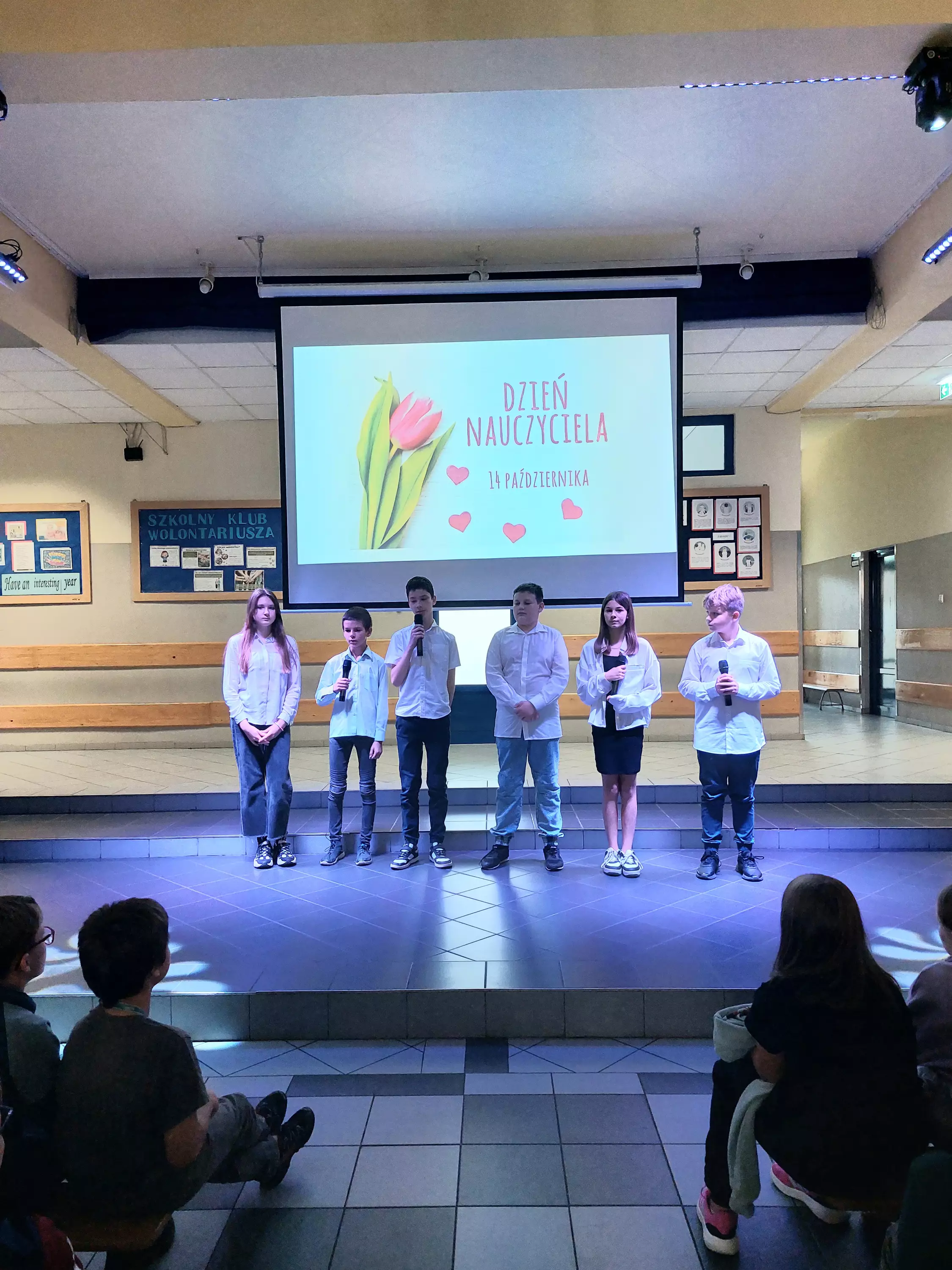 I właśnie z tej okazji 12 października 2023 roku cała społeczność szkolna spotkała się na uroczystej akademii. Przygotowali ją uczniowie klas 4-8. Dzieci pięknymi wierszami wyraziły swoje podziękowanie za serce, uśmiech… i przeprosiły za psoty, figle…, a Samorząd Uczniowski podarował wszystkim pracownikom szkoły słodkie upominki. Uczniowie swoimi występami udowodnili, że dobry nauczyciel nie tylko uczy i wymaga, ale też przeżywa wraz z dziećmi wiele wspaniałych chwil