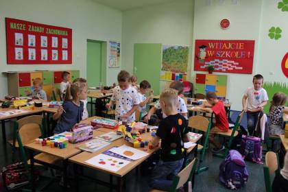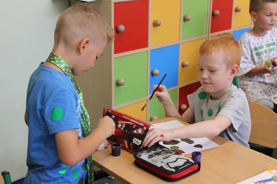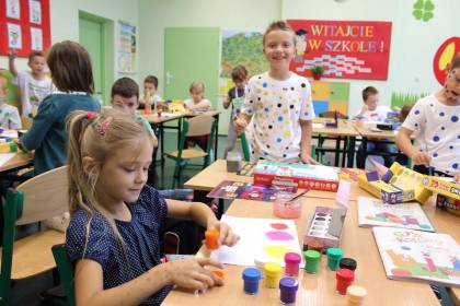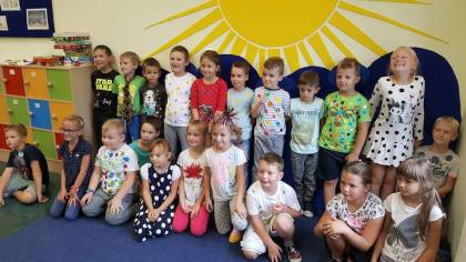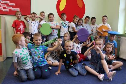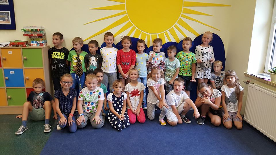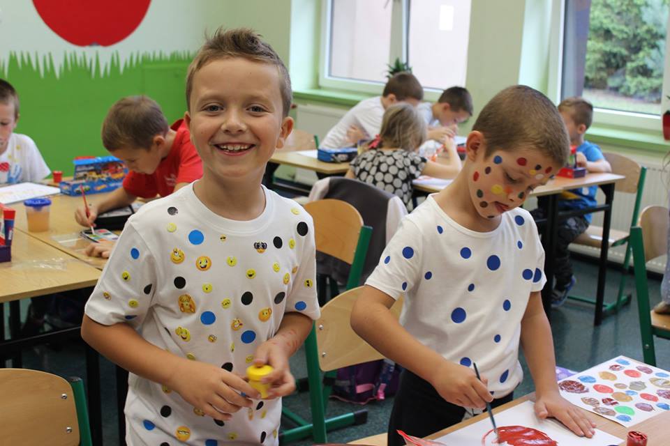 14 września obchodziliśmy w naszej szkole Światowy Dzień Kropki. Jest to dzień twórczości, kreatywności i wyobraźni dziecięcej. Uczniowie wszystkich klas, solidaryzując się z przesłaniem tego dnia, byli poubierani i pomalowani w kropki, ale również wykonywali zadania i prace plastyczne związane z kropką, aby udowodnić sobie i innym, że od kropki wszystko sie zaczyna. Wśród "zakropkowanych" zadań znalazły się pytania o kropki, groszki, kółka, które otaczają nas dookoła i bez nich wiele rzeczy nigdy by nie powstało. Byliśmy dzisiaj bardzo kreatywni !