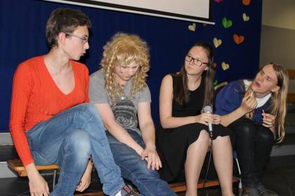 Tradycją naszej szkoły są przedstawienia z okazji Dnia Matki i Ojca. Również w tym roku uczniowie przygotowali wspaniałą uroczystość. Program był bardzo bogaty i różnorodny. Piękne piosenki, przedstawienia kabaretowe, popisy taneczne - wszystko po to, aby rodzice mogli zobaczyć, czego ich pociechy nauczyły się w naszej szkole. Młodzi artyści nagrodzeni byli gromkimi brawami przez swoich rodziców. W przerwie był też słodki poczęstunek dla obecnych. Imprezę zaplanowały i przygotowały mgr Grażyna Gerhards i mgr Adriana Wręczycka oraz Teatr "Trapez" i wielu innych artystów.