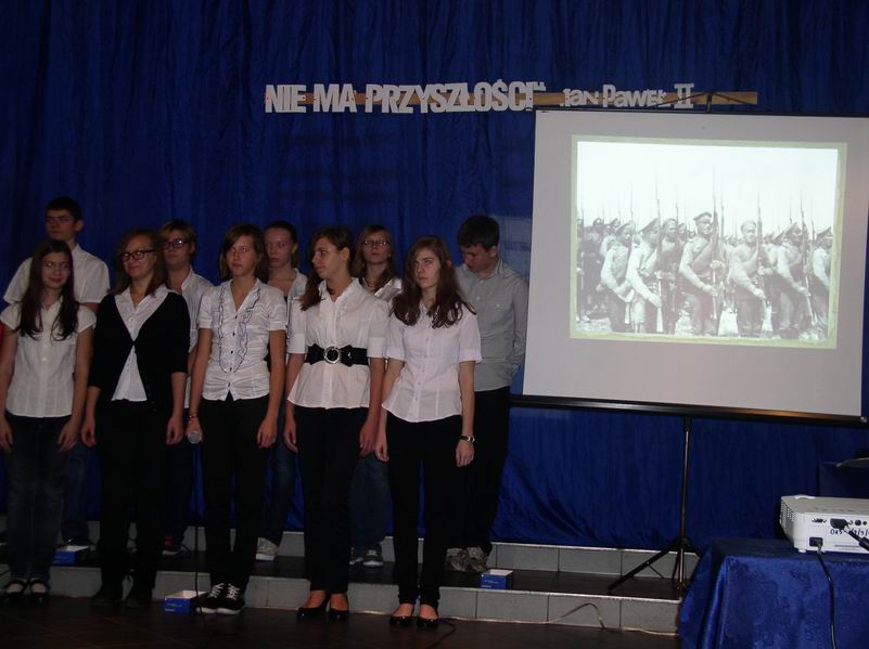 8 listopada w Gimnazjum nr 2 odbyła się uroczysta akademia o charakterze patriotycznym, która upamiętniała kolejną rocznicę odzyskania przez Polskę niepodległości. Przedstawienie ukazywało różną młodzież patriotów i taką, która nie wie, co to znaczy patriotyzm. Akademia była wymowna i wzruszająca. Program artystyczny przygotowały panie: mgr Aleksandra Hepner-Zając i mgr Adriana Wręczycka.