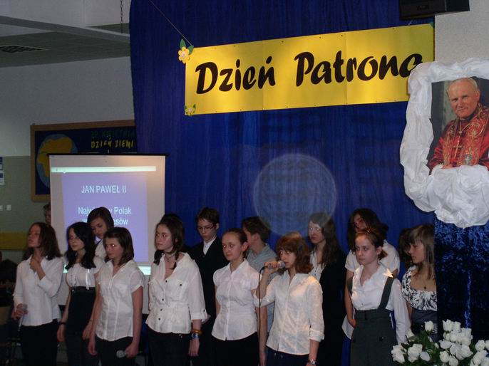 19 maja 2010 odbył się kolejny Dzień Patrona Gimnazjum nr 2. Aby uczcić wielkiego Polaka , Jana Pawła II , uczniowie przygotowali montaż słowno-muzyczny. Uroczysty apel przygotowany został z powagą, ale również humorystycznie. Uczniowie recytowali wiersze Jana Pawła II, śpiewali piosenki z nim związane, opowiadali anegdoty z jego życia.