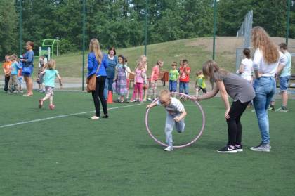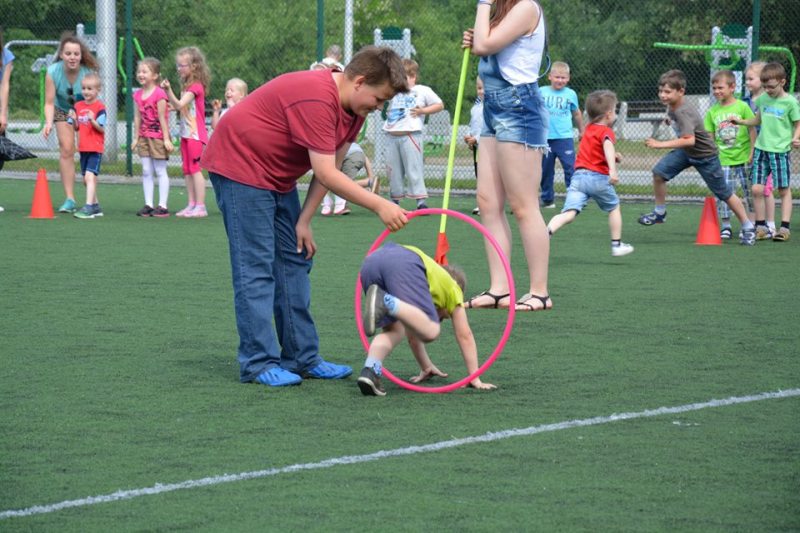 gry i zabawy sportowo- rekreacyjne na boisku szkolnym.