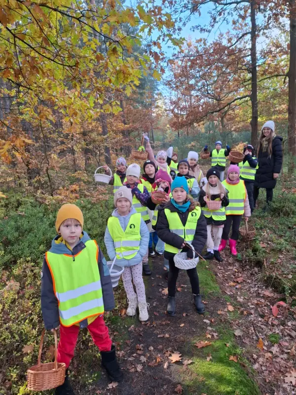 Nie zabrakło też zbierania grzybów – dzieci z ogromnym zaangażowaniem szukały prawdziwków i podgrzybków!