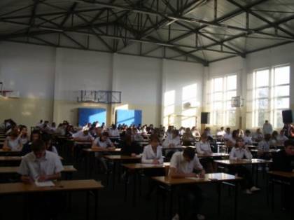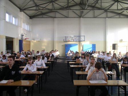 21 października 2008 roku ,o godzinie 9.00 po raz pierwszy w historii gimnazjum odbył się egzamin próbny z zakresu znajomości języka obcego nowożytnego. Obecne klasy trzecie SA pierwszym rocznikiem , który przystąpi do pisania takiego egzaminu. Sprawdzian trwał 90 minut, miał formę testu z zadaniami otwartymi i zamkniętymi. Najtrudniejszym przedsięwzięciem organizatorów było odpowiednie przygotowanie hali i nagłośnienia, aby uczniowie mogli odpowiednio głośno i wyraźnie wysłuchać tekstów i poleceń w języku obcym. Nagłośnienie hali się udało, mamy nadzieję, iż egzamin również.