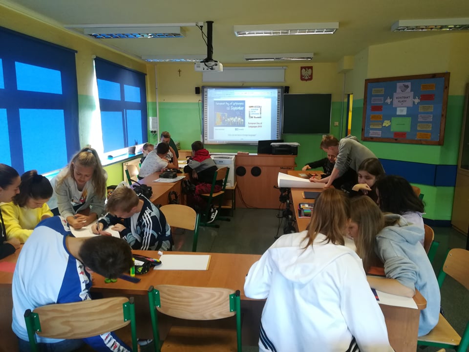 Europejski Dzień Języków - międzynarodowe święto, ustanowione z inicjatywy Rady Europy, obchodzone w całej Europie corocznie 26 września. Jego celem jest zachęcenie Europejczyków do nauki języków obcych oraz propagowanie zalet różnorodności językowej. Z tej okazji, 26 września w ramach lekcji języka angielskiego i niemieckiego uczniowie wszystkich klas przygotowywali różnego rodzaju kolorowanki, kolaże i prace plastyczne według własnego pomysłu. Tematem przewodnim była oczywiście nauka języków obcych.