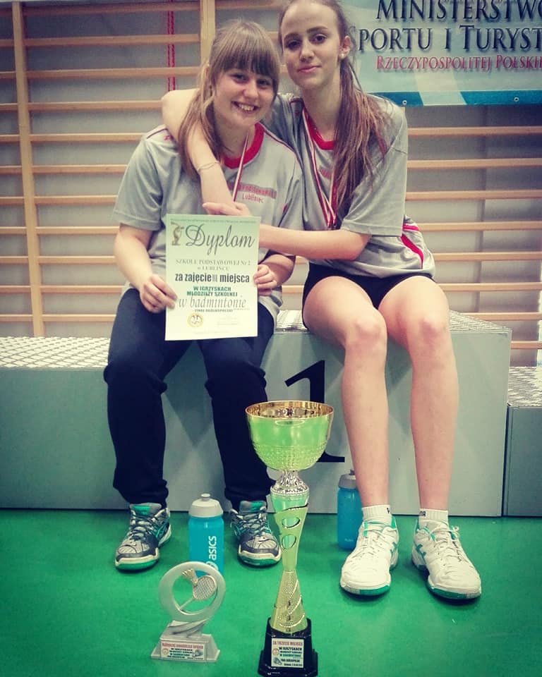 Uczennice Zuzanna Luban i Eliza Kwiatkowska, zawodniczki STB Energia w dniach 16-18.03.2018r. pod opieką Anny Świtek reprezentowały barwy SP 2 w Finale Ogólnopolskim Badmintona w Białymstoku. Nasze uczennice po zaciętych meczach w sobotę uplasowały się na miejscu drugim w grupie. Co dało im możliwość gry o miejsca 1-4. W niedzielę badmintonistki trafiły na trudnego przeciwnika, grały z mistrzami oraz wicemistrzami Polski. Po bardzo emocjonujących meczach oraz walce do ostatniej lotki, przegrały jednym punktem. Na pełnym skupieniu zagrały ostatni decydujący pojedynek z Suwałkami. Bez żadnych przeszkód pokonały rywalki, zdobywając Brązowy medal Mistrzostw Polski w Badmintonie. Gratulujemy.