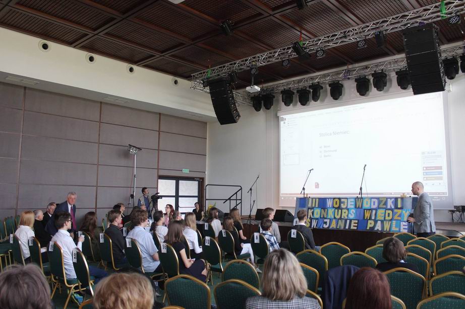 18 maja 2017 roku w Muzeum Monet i Medali Jana Pawła II w Częstochowie odbył się finał III Wojewódzkiego Konkursu Wiedzy o Janie Pawle II. Naszą szkołę reprezentowali: Krzysztof Fokczyński kl. 1b, Błażej Gruchalski 1b oraz Wojciech Fokczyński kl. 3b. Nasza drużyna znalazła się w najlepszej szóstce województwa. Gratulacje i życzymy dalszych sukcesów.