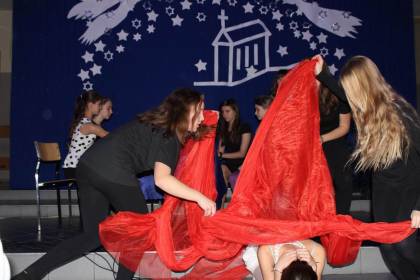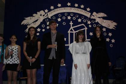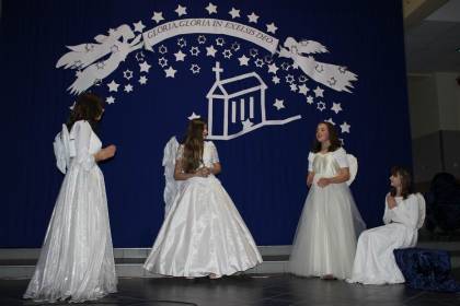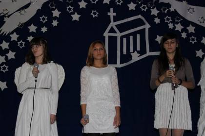 „Moje małe Betlejem” to tytuł przedstawienia jasełkowego, które przygotowała grupa teatralna „Trapez” z Gimnazjum nr 2. W szkole zapanował prawdziwie świąteczny nastrój. Aktorzy z koła teatralnego pokazali swój profesjonalizm. Wspaniale zostały odegrane wszystkie role, piękny śpiew, niesamowite dekoracje spowodowały, iż na holu panowała idealna cisza, a spektakl zakończył się gromkimi brawami. Dekoracje do przedstawienia przygotowała mgr Bogumiła Majewska, zaś przedstawienie mgr Grażyna Gerhards i mgr Adriana Wręczycka. Dziękujemy za wspaniały spektakl!