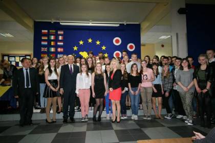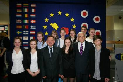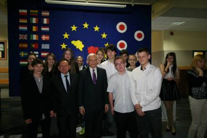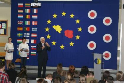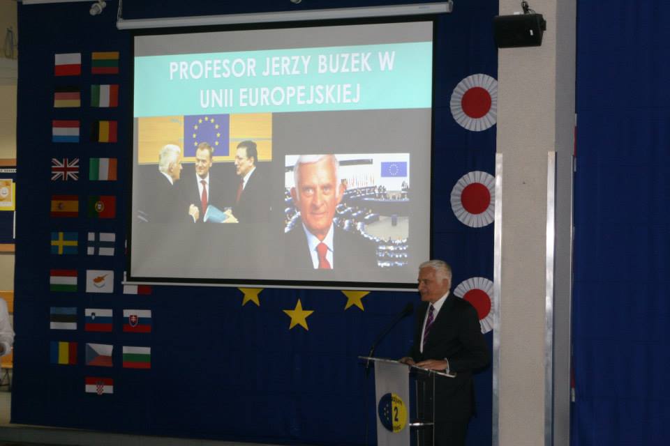 W czwartek 27 marca 2014 roku Gimnazjum nr 2 im. Jana Pawła II w Lublińcu gościło niezwykłego człowieka – prof. Jerzego Buzka. Odwiedził on szkołę wraz z Burmistrzem Lublińca – Panem Edwardem Maniurą i Zastępcą Burmistrza Panią Anną Jonczyk–Drzymała. w trakcie akademii, którą poprowadzili uczniowie: Wiktoria Smyła – laureatka konkursów przedmiotowych z WOS–u i historii oraz Wojtek Dyczkowski – zdobywca I miejsca w Wojewódzkim Konkursie „Spiel mit Deutsch”, uczniowie pokazali dwie prezentacje – Moja szkoła w UE i drugą, która przybliżyła uczniom postać profesora Buzka. Nie zabrakło również Hymnu Unii Europejskiej – "Ody do Radości", którą uczennice odśpiewały w językach, których uczą się w szkole – po angielsku, niemiecku, francusku i oczywiście po polsku. Po prezentacjach głos zabrał Pan profesor, który opowiedział o swojej pracy w UE. Uczniowie Gimnazjum nie tylko wysłuchali wystąpienia gościa, ale również mogli zadawać mu pytania. Po każdej odpowiedzi rosła liczba uczniów chcących zadać kolejne pytanie. Niestety ten wspólnie spędzony czas szybko dobiegał końca. Na pożegnanie wszyscy odtańczyli „belgijkę”. Gimnazjaliści zaprosili profesora na ponowną wizytę w naszej szkole.