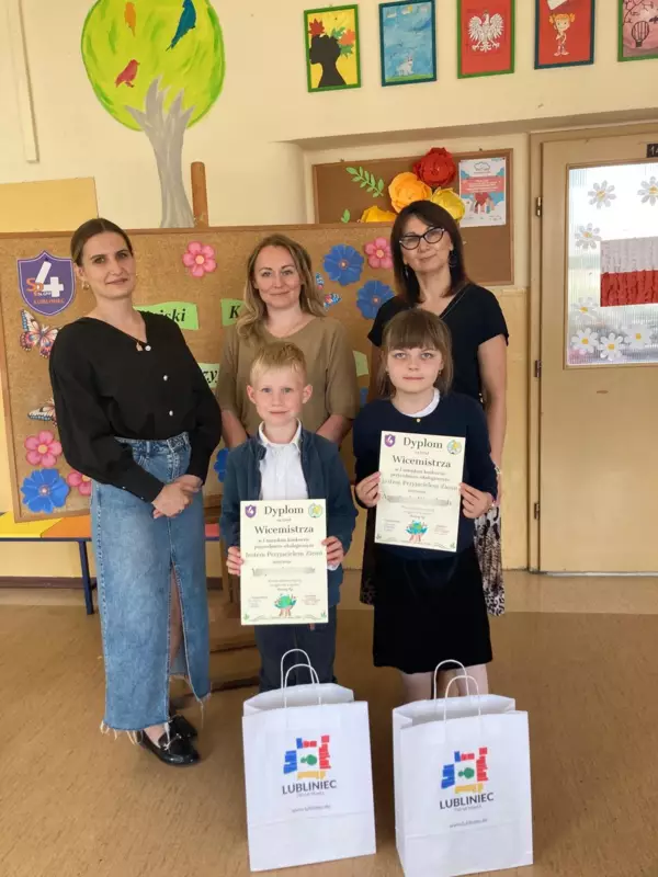 Z przyjemnością informujemy, że uczniowie Anastazja Wandzich i Wojciech Borosz zdobyli tytuł wicemistrza wiedzy przyrodniczej w I Miejskim Konkursie Przyrodniczo-Ekologicznym pod hasłem "Jestem Przyjacielem Ziemi" organizowanym przez Szkołę Podstawową nr 4. Sukces ten świadczy o ich dużym zaangażowaniu i solidnej wiedzy z zakresu przyrody i ekologii.