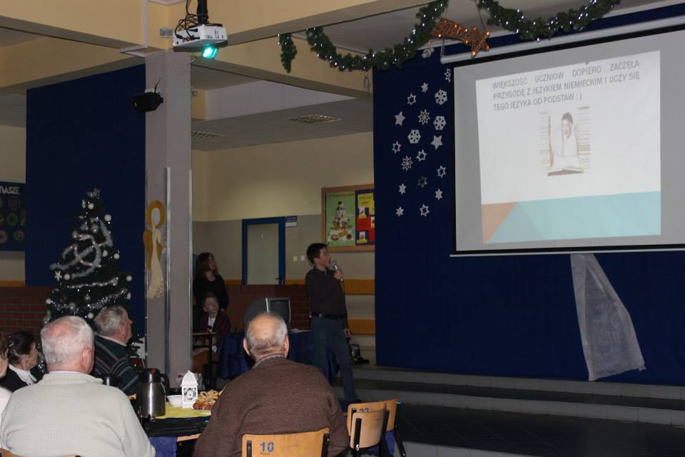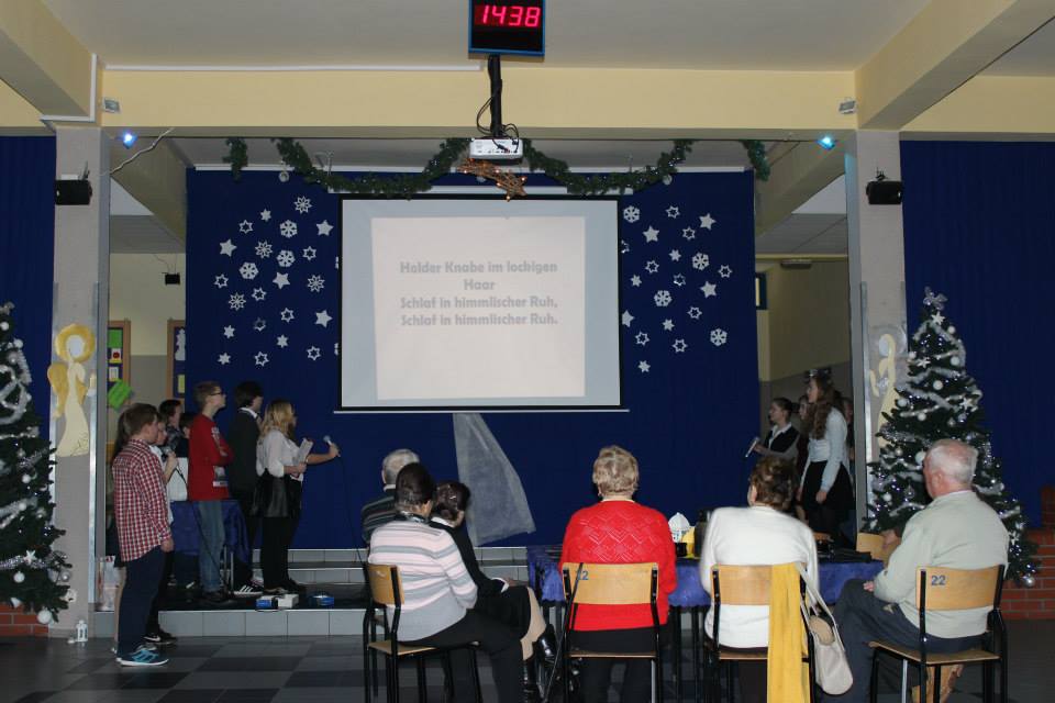 W dniu 28 stycznia 2015 r. w Gimnazjum nr 2 odbyło się spotkanie przedstawicieli Towarzystwa Społeczno – Kulturalnego Niemców na Śląsku Opolskim (oddział DFK Lubliniec) z dyrekcją, nauczycielami oraz uczniami klas pierwszych uczęszczających na zajęcia j. niemieckiego jako języka mniejszości narodowej. Celem spotkania było wspólne kolędowanie, wymiana doświadczeń i zapoznanie gości z efektami nauczania języka niemieckiego. Uczniowie przygotowali przedstawienie o tematyce bożonarodzeniowej „Das Licht vom Bethlehem”, prezentację multimedialną dotyczącą projektów i wyjazdów młodzieży w I semestrze nauki roku szkolnego. Projekt uczniów spotkał się pozytywnym odbiorem gości, którzy nie kryli swojego wzruszenia. Na zakończenie spotkania uczniowie otrzymali słodkie upominki od przedstawicieli Towarzystwa. Spotkanie zostało zainicjowane i zorganizowane przez nauczycielki j. niemieckiego p. M. Czaja i M. Dudek-Piskorz
