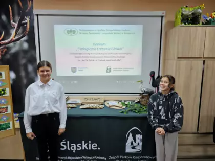 Dnia 9 października dwie uczennice klasy 6A wzięły udział w konkursie "Ekologiczne łamanie główki" organizowanym w ramach Kampanii edukacyjno-informacyjnej Zespołu Parków Krajobrazowych Województwa Śląskiego pt. "Ja i Ty, Ty i Ja - o Przyrodę niech każdy dba" w Kalinie.
