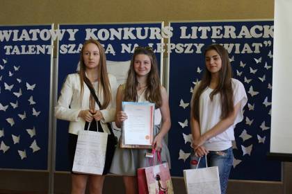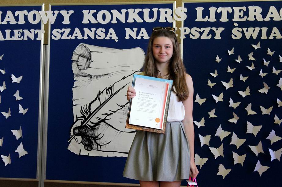 Aleksandra Just została laureatką XI Powiatowego Konkursu Literackiego "Twój talent szansą na lepszy świat". I miejsce w Powiecie w kategorii gimnazjum wywalczyła pracą w formie wywiadu. Konkurs został zorganizowany w Zespole Placówek Oświatowych w Boronowie pod patronatem Wójta Gminy Boronów - Rufina Majchrzyka, a prace konkursowe oceniała miedzy innymi dr Edyta Skoczylas-Krotla z Akademii Jana Długosza w Częstochowie.
