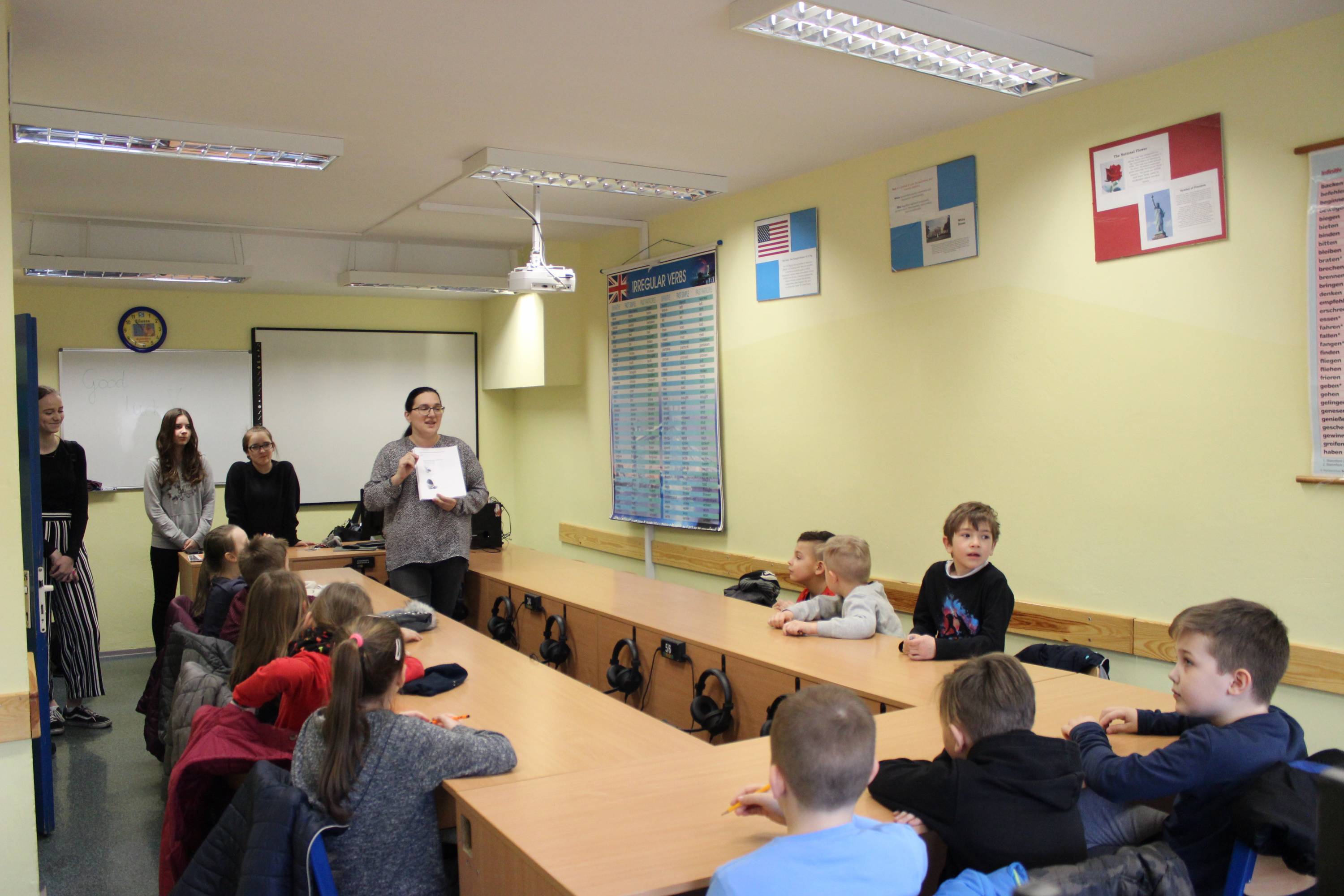 Zaprosiliśmy uczniów klas 1 i 4 do wzięcia udziału w KONKURSIE WIELKANOCNYM z języka angielskiego i niemieckiego. Konkurs odbył się 28.03.2018r. Konkurs ten składał się z dwóch etapów: . Rozwiązanie testu językowego opartego na przygotowanych materiałach, a następnie.. . Wzięcie udziału w szukaniu czekoladowych jajek wielkanocnych. Wynik konkursu zależały od punktów zdobytych w obu kategoriach. Oto zwycięzcy: Język angielski Miejsce 1 - Wiktoria Suszko 4a, Kacper Jachymczak 1b Miejsce 2 - Marianna Kaźmierska 4b, Miejsce 3 - Jakub Puzoń 4a Język niemiecki Miejsce 1 - Lena Cyroń 4a Miejsce 2 - Antonia Wełyczko 4a Wygrani cieszyli się z nagród, ale największa frajdę mieli zjadając znalezione czekoladowe jajka i króliczki wielkanocne. Dziękujemy za udział. Organizatorzy: Marlena Dudek-Piskorz, Izabela Famuła-Lenczkiewicz
