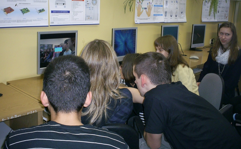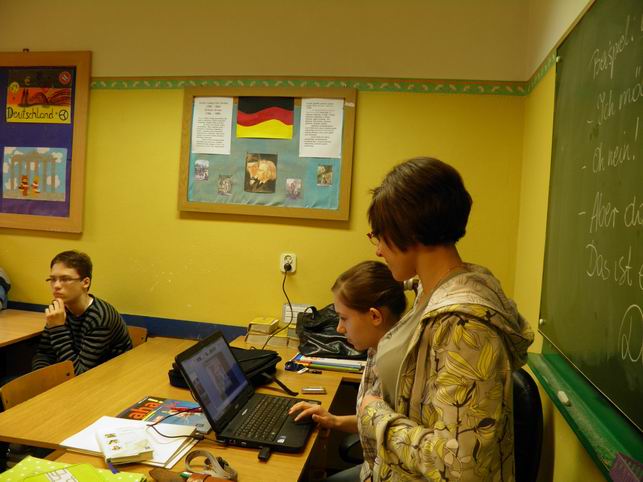 Robienie gazetki szkolnej. Na jednej z tablic na szkolnym korytarzu robiliśmy gazetkę dotyczącą projektu ‘Comenius’. Teraz każdy może przeczytać o jej szczegółach. Kiedy już przypięliśmy ostatnią pinezkę do tablicy powróciliśmy do klasy. Zostaliśmy zapoznani z programem e-Twinnig, w którym to oglądaliśmy prezentacje innych państw z ubiegłych lat.