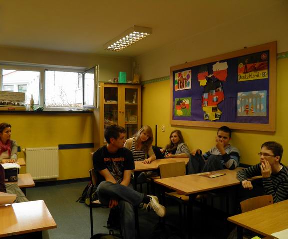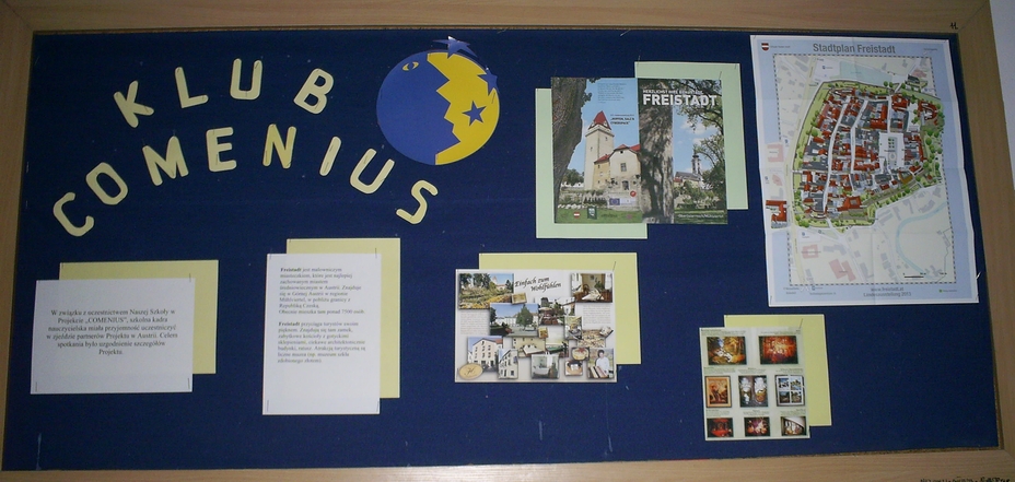 Dzisiejszego dnia zmieniliśmy gazetkę na szklonym korytarzu. Poprzednia, prezentująca cel i działanie projektu Comenius została zamieniona na prezentacje austriackiego miasta Freistadt. Dzisiaj również robiliśmy, zmienialiśmy i dopracowywaliśmy nasze pomysły na logo.