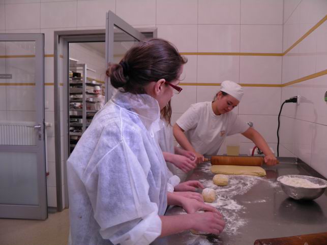 Przed wyjazdem na Słowację udaliśmy się również z wizytą do piekarni Kampa na Steblowie. Mieliśmy tam okazję zobaczyć jak powstają przepyszne wypieki, a także sami mogliśmy brać udział w przygotowaniu i pieczeniu ciasteczek. Przygotowane przez nas produkty zabraliśmy ze sobą , aby wszyscy uczestnicy spotkania na Słowacji mogli spróbować naszych pyszności.