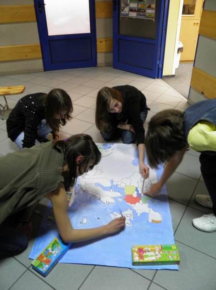 Ostatnie poprawki projektu mapy Europy.W dzisiejszym dniu wykończona została mapa, którą zobaczyć można na gazetce Comeniusa (przy sali nr 18). Podczas gdy część uczniów wykańczała graficznie mapę pozostali uczniowie mieli okazję zagrać w grę językową.