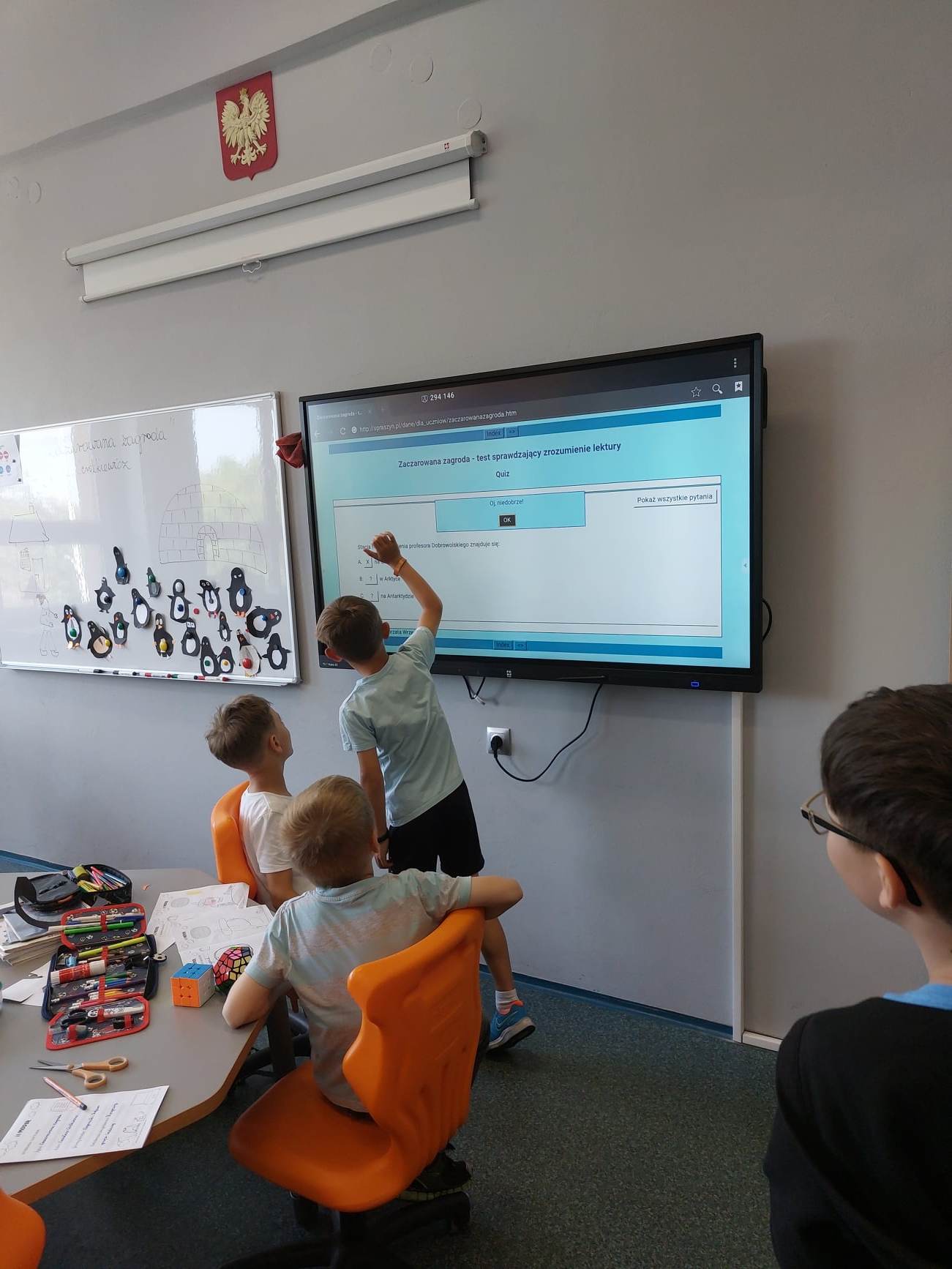 Klasa I B "Czyta z klasą", ale nie tylko. Doskonałym urozmaiceniem zajęć okazały się pracownie i sprzęt zakupiony w ramach Laboratorium Przyszłości. Uczniowie nie tylko zdobywali teoretyczną wiedzę, ale również dzięki goglom VR mogli przenieść się na Antarktydę.