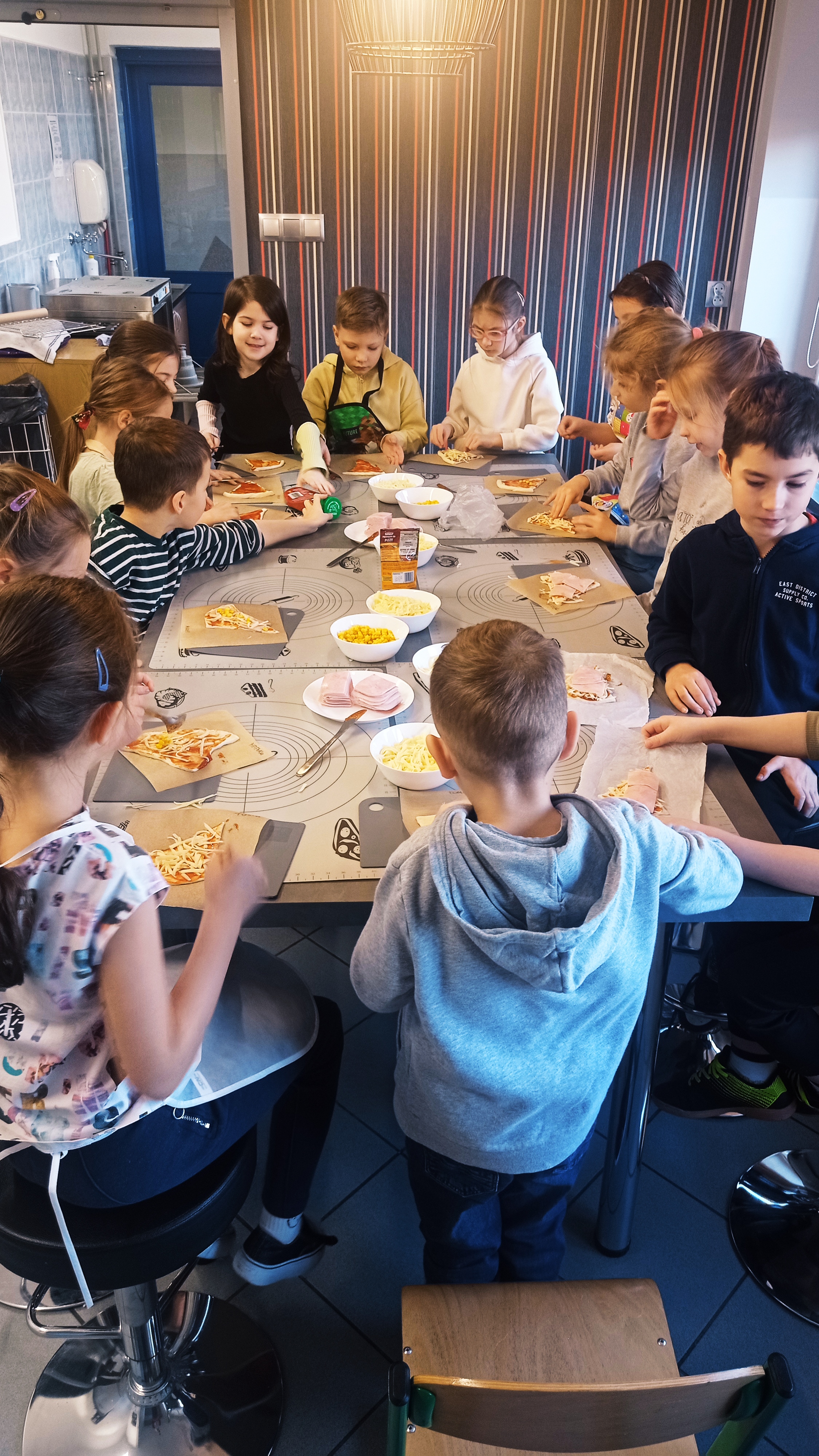 Dzień Pizzy to pyszna i radosna zabawa! Uczniowie poznają składniki pizzy, tworzą własne papierowe kompozycje i dowiadują się, skąd pochodzi to popularne danie. Nie brakuje też wspólnego świętowania przy pizzy i rozmów o zdrowym odżywianiu.