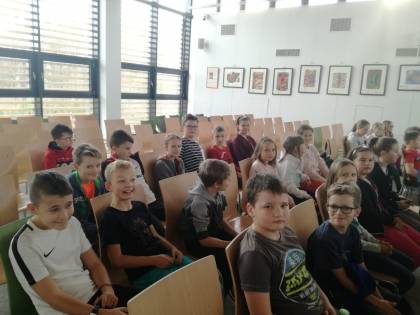 Dnia 21.11.2019r. klasa IV a uczestniczyła w Lubitece w spotkaniu autorskim z Panem Łukaszem Łebek, lekarzem weterynarii i autorem dwóch książek dla dzieci "Wszystko o krowach", " Czy krowy jeżdżą do weterynarza". Pan Łukasz wprowadził nas w świat zwierząt ukazując realne przykłady swych codziennych pacjętów. Prezentacja multimedialna i rekwizyty sprawiły, że mogliśmy dokładnie poznać trud pracy ze zwierzętami. Dziękujemy za spotkanie