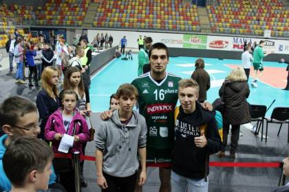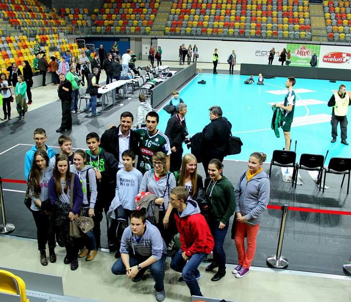 Po meczu nasi uczniowie mieli okazję sfotografować się z gwiazdami siatkówki oraz zebrać autografy. Spotkali się również z byłym uczniem naszego gimnazjum Piotrem Hainem, który reprezentuje barwy AZS Olsztyn.