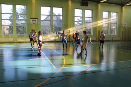 12.12. 2019 w naszej szkole odbył się mecz świąteczny w piłkę nożną halową nauczyciele - uczniowie. W wypełnionej po brzegi hali sportowej, dzięki ogłuszającemu dopingowi ze strony uczniów (dzięki Pani Bogusi nie zabrakło nawet pomponów) było to wyjątkowe spotkanie. Mecz był przyjemny dla oka, z dużą ilością sytuacji podbramkowych. Wynik z naszego punktu widzenia jest nieistotny, ponieważ najważniejsza była integracja środowiska nauczycielskiego i uczniowskiego. Boisko pokazało, że z bogatego piłkarskiego doświadczenia nauczycieli uczniowie mogą jeszcze wiele skorzystać. Gratulacje dla wszystkich. Byliście wspaniali!