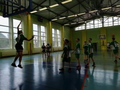 13 kwietnia reprezentanci naszej szkoły oraz SP1 w ramach współpracy między szkołami zagrali mecz towarzyski w piłce koszykowej chłopców. Spotkanie to było formą treningu przed zbliżającymi się zawodami międzyszkolnymi. Pozwoliło zawodnikom obu drużyn poćwiczyć, zmierzyć się ze "stresem" i przede wszystkim aktywnie spędzić czas. W atmosferze życzliwości i "fair - play" chłopcy zagrali spotkanie, choć ochoty i animuszu starczyłoby jeszcze na drugie tyle.