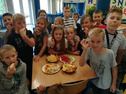 W dniu 1 października 2019r. w naszej szkole zorganizowaliśmy "Międzynarodowy Dzień Wegetarianizmu". Impreza ta włączona jest do szkolnego kalendarium Samorządu Uczniowskiego. Celem obchodów Dnia Wegetarianizmu jest przede wszystkim propagowanie wśród młodych ludzi zdrowego stylu odżywiania. W tym dniu SU przygotował krótką prelekcję nt. zdrowej żywności. Nauczyciele klas młodszych przygotowali wraz z uczniami przepyszne potrawy wegetariańskie.