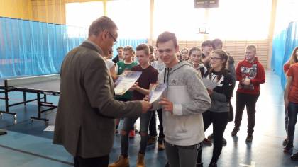 Tuż przed feriami zimowymi, w SP w Pawonkowie, odbyły się Mistrzostwa Powiatu w tenisie stołowym klas starszych. Nasze reprezentacje, zarówno dziewcząt, jak i chłopców ukończyły zawody na 5 miejscu. Wszyscy uczestnicy otrzymali poczęstunek w postaci drożdżówki i wody mineralnej, a poszczególne zespoły pamiątkowe dyplomy.