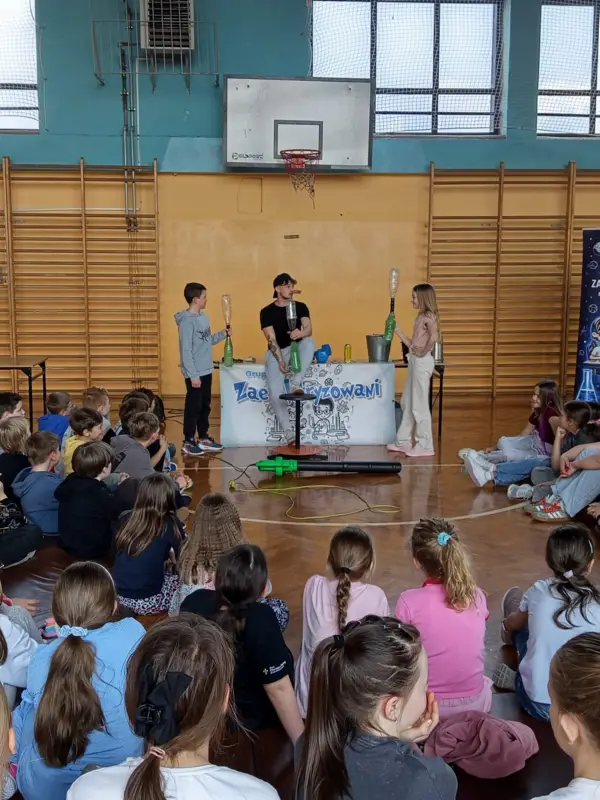 W naszej szkole odbyło się niezwykłe spotkanie z nauką, które poprowadził animator z grupy „Zaelektryzowani”. Choć na scenie występował solo, jego energia i poczucie humoru sprawiły, że cała sala gimnastyczna bawiła się doskonale, a fizyka i chemia przestały być nudną teorią.