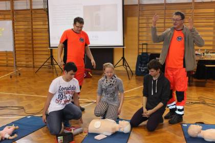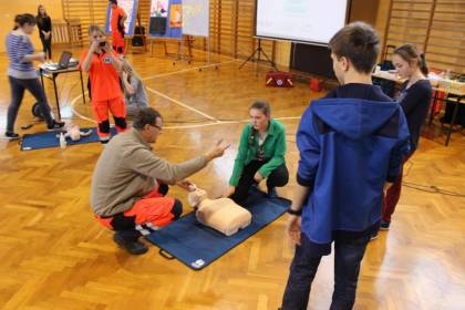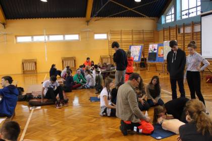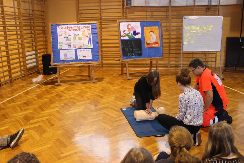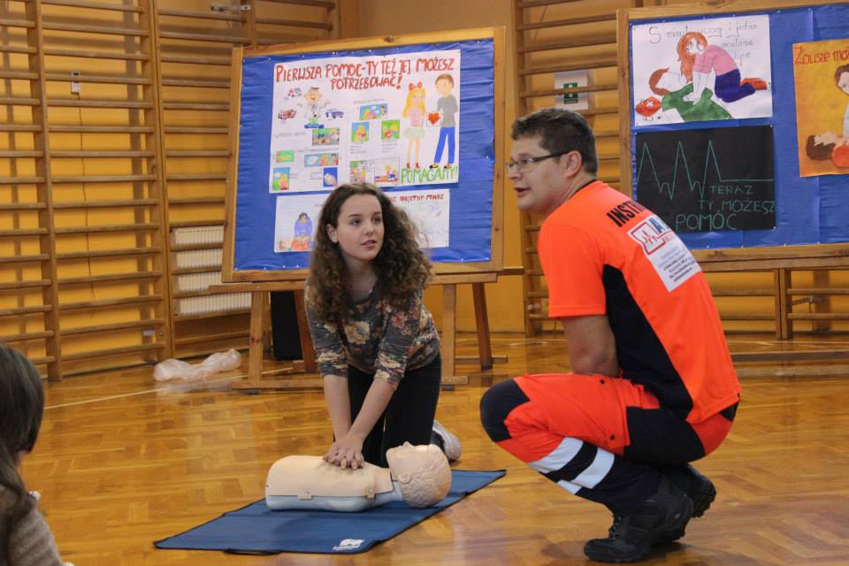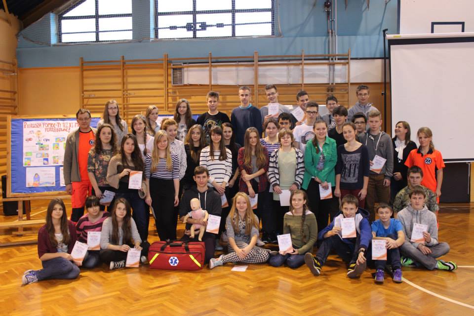 W dniu 20 listopada 2014r w naszym Gimnazjum odbyły się warsztaty szkoleniowe z zakresu udzielania I pomocy przedmedycznej w ramach nagrody w konkursie: „Nie bój się pomóc” realizowanego jako projekt „ABC Młodego Ratownika” inicjowany przez nas projekt współfinansowany jest przez Rzymskokatolicką Parafię NMP w Myszkowie-Mrzygłodzie i Fundusz Inicjatyw Obywatelskich. Szkolenie było przeprowadzone przez licencjonowanych ratowników medycznych. w szkoleniu wzięli udział uczniowie klas II i III. Uczestnicy poznali zasady resuscytacji, następnie ćwiczyli na fantomach. W przyszłości będą szkolić swoich kolegów i koleżanki na lekcjach z EDB, WF i biologii.