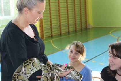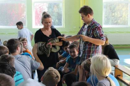 W dniu 10 października 2014r w naszym Gimnazjum odbyła się pierwsza z cyklu żywa lekcja biologii. Tematem, który dostarczył nam wielu wrażeń były „GADY”. W czasie żywej lekcji mogliśmy podziwiać niezwykłe okazy węży. Dowiedzieliśmy się różnych ciekawostek o tych niezwykłych stworzeniach, ich budowie, fizjologii oraz szczegółach hodowli. Wielu „śmiałków” musiało przełamać strach przed dotknięciem bardzo delikatnej i ciepłej skóry tych majestatycznych zwierząt. Myślę, że żywe lekcje biologii będą stałym punktem w naszym Gimnazjum, ponieważ uczniowie polubili tą formę zajęć.