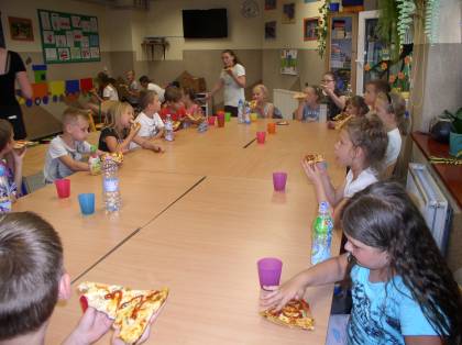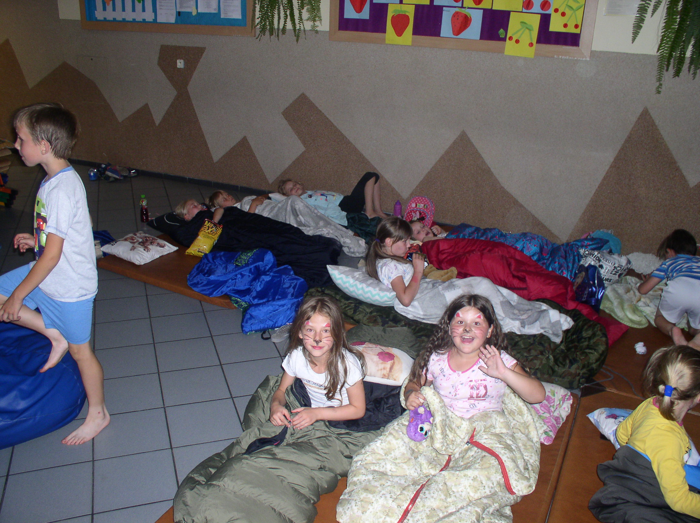 Świetlica szkolna we współpracy z SKW po raz pierwszy zorganizowała "Noc wrażeń" dla najmłodszych uczniów. Dzieci z klas pierwszych wraz z wolontariuszami miały okazję spędzić całą noc w szkole. Towarzyszyło temu mnóstwo atrakcji: tor przeszkód i zabawy sportowe, "szukanie skarbu" na terenie całej szkoły, pizza, dyskoteka i seans filmowy. Po wieczorze pełnym wrażeń na dzieci czekał nocleg w wietlicy szkolnej, a rano wspólnie spożywane śniadanko i poranny rozruch na świeżym powietrzu. Dzieciom uśmiech nie znikał z twarzy. To był niezapomniany czas dla wszystkich uczestników "Nocy wrażeń".