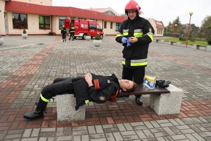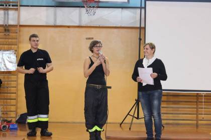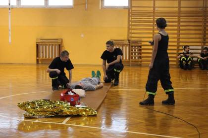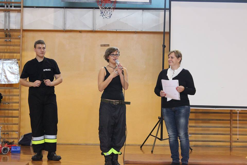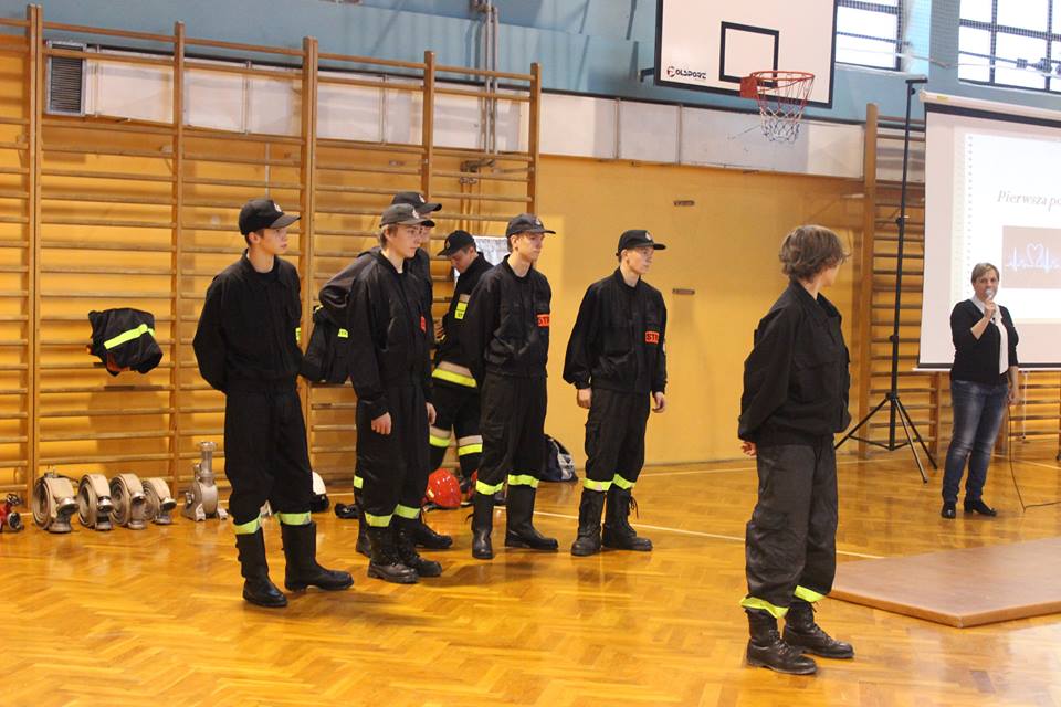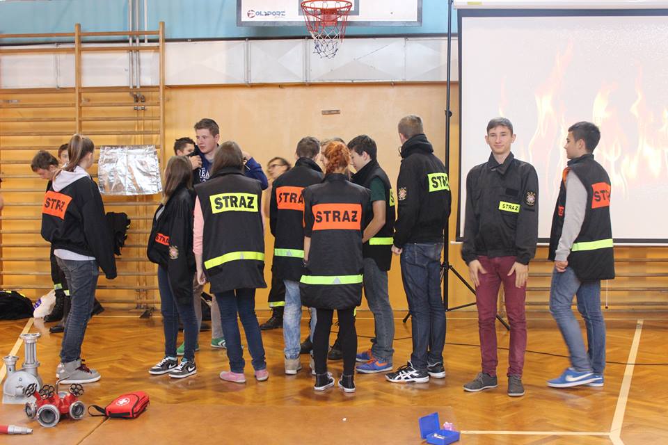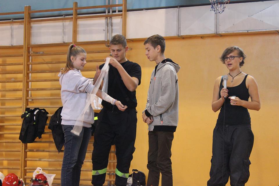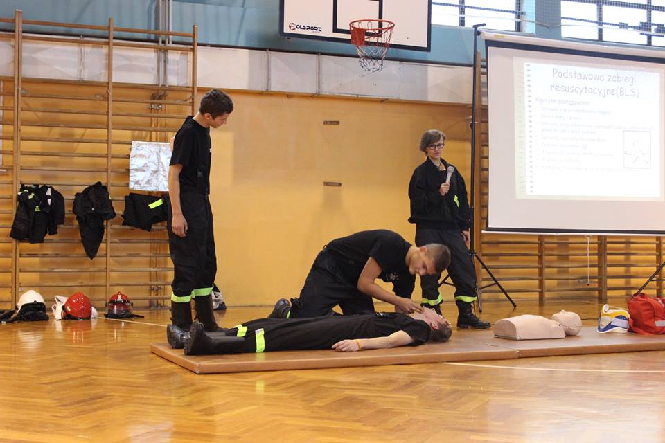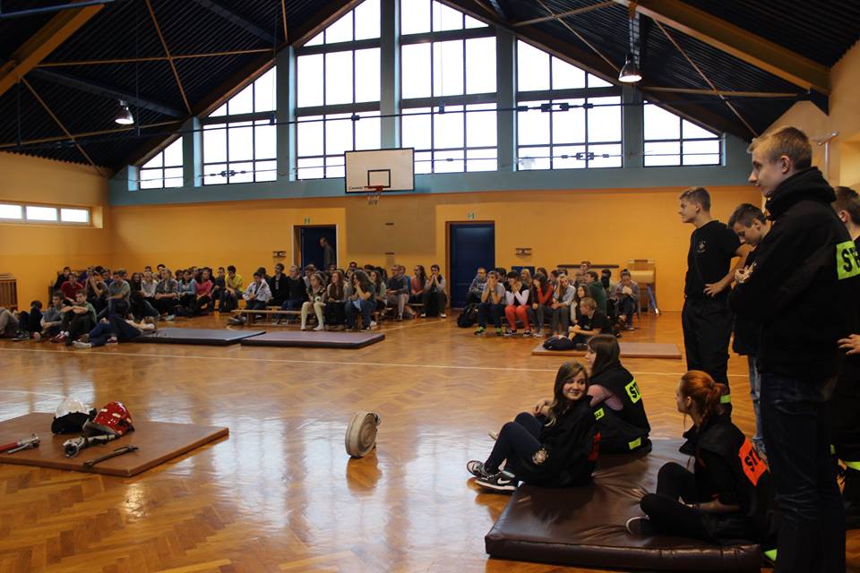 W dniu 23 października 2014r. zostały przeprowadzone dla klas III warsztaty przez Młodzieżową Drużynę Pożarniczą przy Powiatowej Ochotniczej Straży Pożarnej. Warsztaty dotyczyły zagadnień z udzielania pierwszej pomocy i działań przeciwpożarowych w ramach przedmiotu edukacja dla bezpieczeństwa i biologia. Mieliśmy okazje poznać i przećwiczyć podstawowe zasady niesienia pomocy w różnych sytuacjach np. RKO, złamań, zasłabnięć, zadławień. Następnie młodzież poznała środki gaśnicze i zobaczyła pokaz z udziałem drużyny młodych strażaków. Przećwiczyliśmy ewakuację z górnej sali. Dobra zabawa, rywalizacja, pokaz umiejętności zachęciły naszą młodzież do rozważenia propozycji wstąpienia do MDP ale także oswoiły ich z trudnym zadaniem niesienia pomocy osobom poszkodowanym. Bardzo nas cieszy fakt, że w skład reprezentantów MDP wchodzili także absolwenci naszego gimnazjum: M. Gałuszkiewicz, I. Bissinger, T. Strugacz. K. Nyk, M. Wojtas, M. Grobara, T. Nowak.