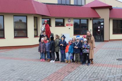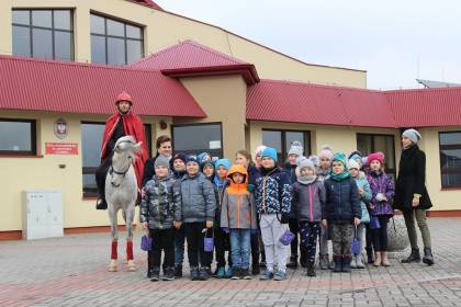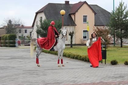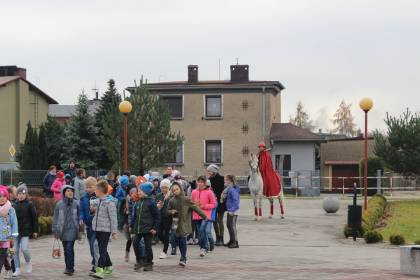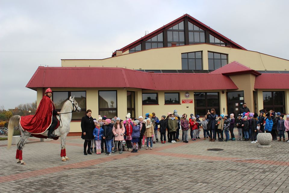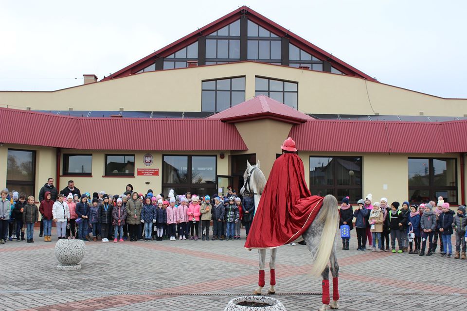 Uczniowie klas I, II, IV i V zebrali się przed szkołą i powitali Świętego Marcina, który przybył na siwym koniu. Zgodnie z legendą Marcin oddał połowę swojego płaszcza żebrakowi. Następnie dzieci odśpiewały piosenkę "Ich gehe mit meiner Laterne" Zachwycony ich śpiewem Marcin zaprosił wszystkich do korowodu, który sam poprowadził. Było radośnie i kolorowo. W rolę św. Marcina wcielił się Krzysztof Podobiński, rolę żebraka odegrał p. Krzysztof Neuman, a towarzyszył dzielny arabek Hadban. Uroczystość przygotowała mgr Jadwiga Podobińska zaś mgr Karina Płotkowska przygotowała wraz z uczniami prezentację o św. Marcinie, co zostało zaprezentowane przez uczniów uczęszczających na zajęcia języka mniejszości niemieckiej.