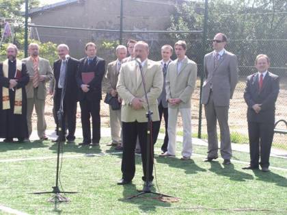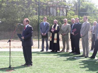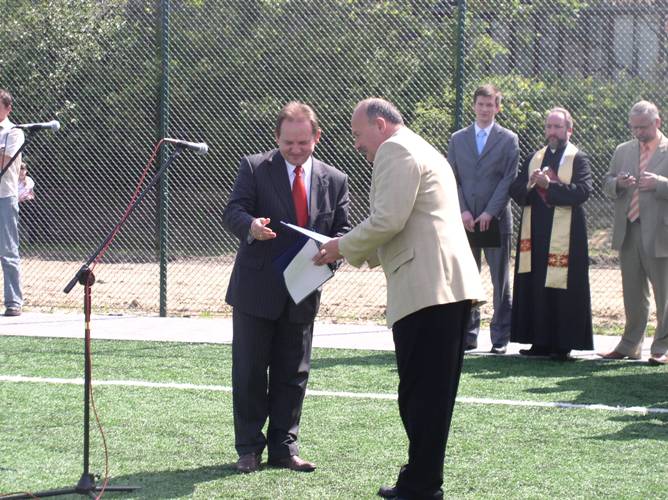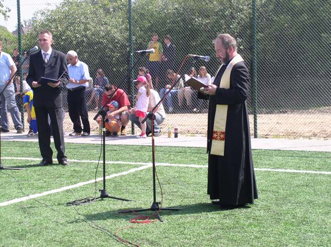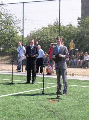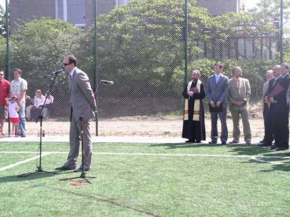 Po otwarciu boiska wielu zaproszonych gości wygłosiło przemówienia, a ksiądz proboszcz Bronisław Jakubiszyn pobłogosławił nowo powstały obiekt. Następnie odbył się mecz juniorskich grup piłkarskich, a zaproszeni goście udali się do budynku Gimnazjum nr 2, w którym obejrzeli program artystyczny w wykonaniu koła teatralnego „Trapez”.