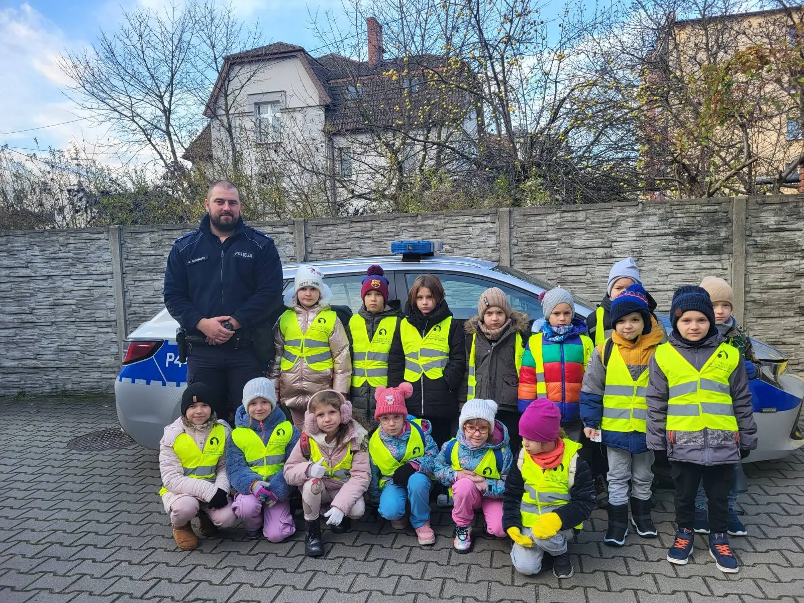 Dzieci z zainteresowaniem poznawały wyposażenie funkcjonariusza – oglądały sprzęt wykorzystywany w różnych sytuacjach, a nawet mogły przymierzyć kamizelkę kuloodporną . Wielkim przeżyciem było również obejrzenie radiowozu z bliska i poznanie jego możliwości.